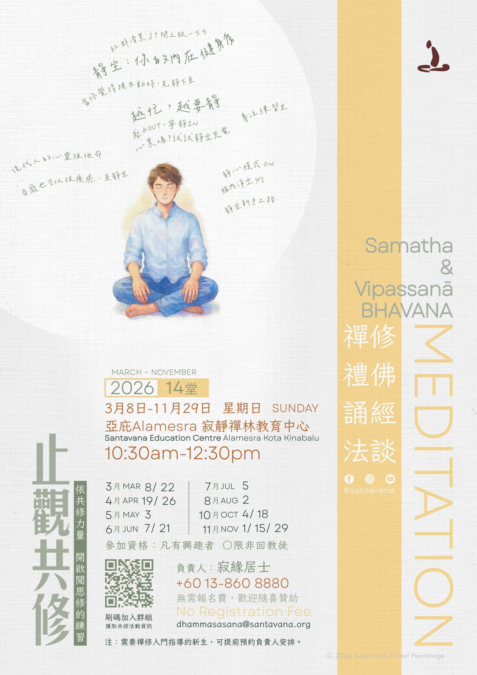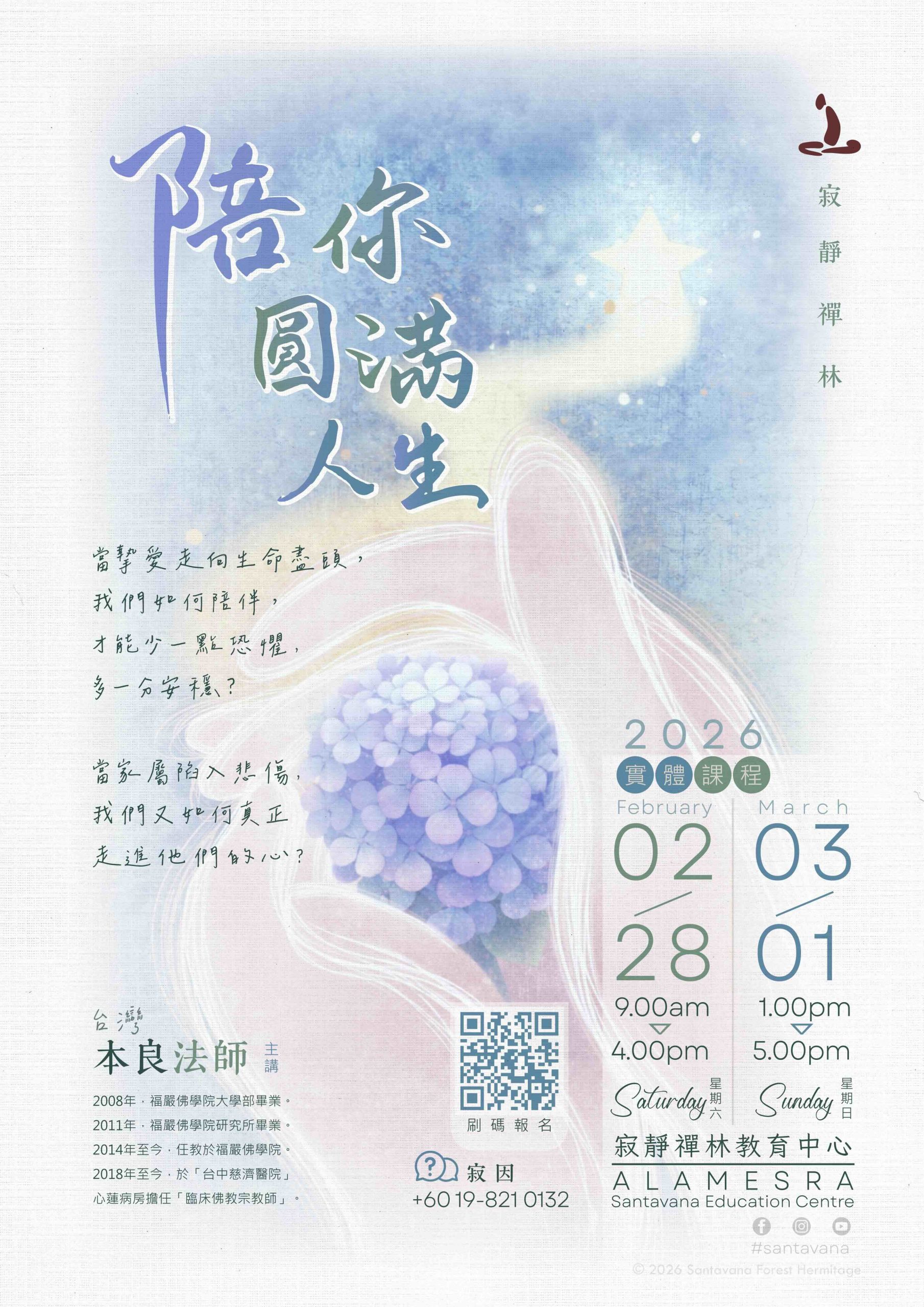 方丈行程報導:於新山指導的「慈心禪」已圓滿結束! 02/02/2026 No Comments 2026年2月1日(日) 9a.m. – 5p.m. ,方丈受新山柔佛佛學會邀請,前往指導 「慈心禪」,經已圓滿結束,Sādhu!Sādhu!Sādhu! Read More »