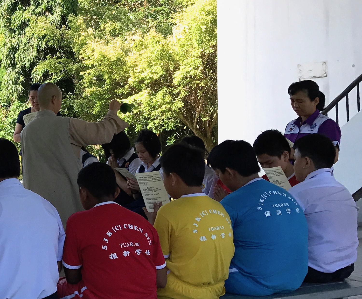 如同往年,今年寂靜禪林再次受邀至振新小學為即將面臨UPSR考試的六年級佛教信仰者的考生們打氣、祝福。該校每一年都邀請各個宗教師為UPSR考生祝福。