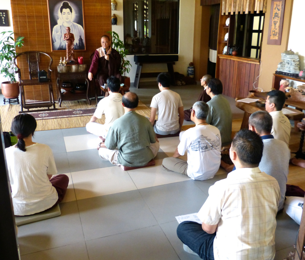早上誦經之後,住持開印長老給予開示。住持讚嘆大家,很難得在星期天可以多睡而不睡,很早醒來。甚至有的從很遠的地方來,至少駕駛一個小時。一個月一次的共修,主要能夠讓在忙碌的人也能夠攝心、體驗佛法。