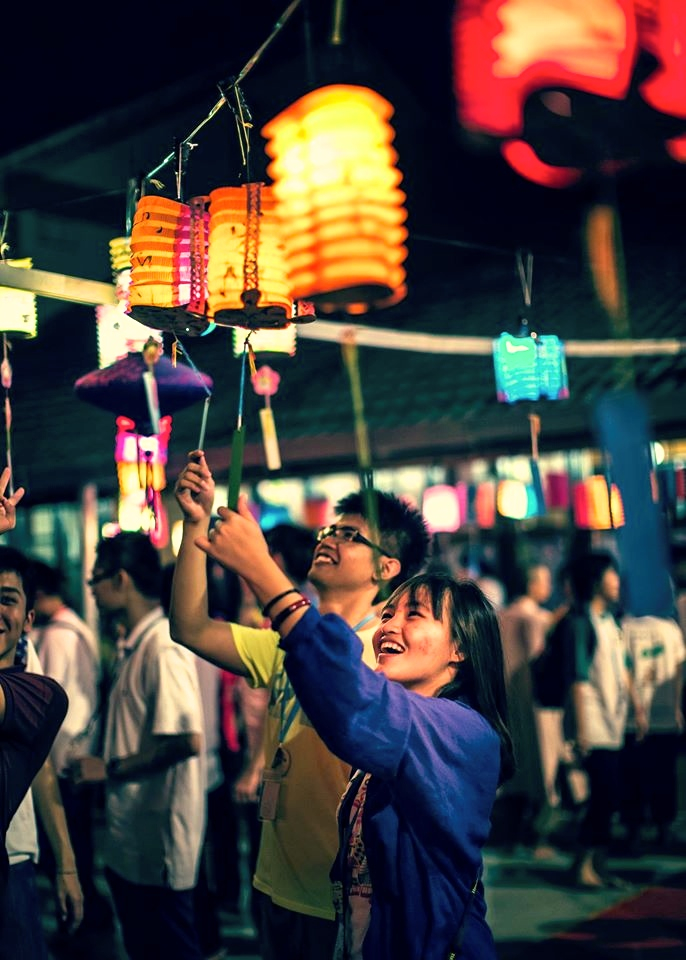 20140913沙大生們掀開燈籠下掛著的燈謎,找尋自己會猜的,待會好去換禮品也![此相片由李涵威醫生攝]