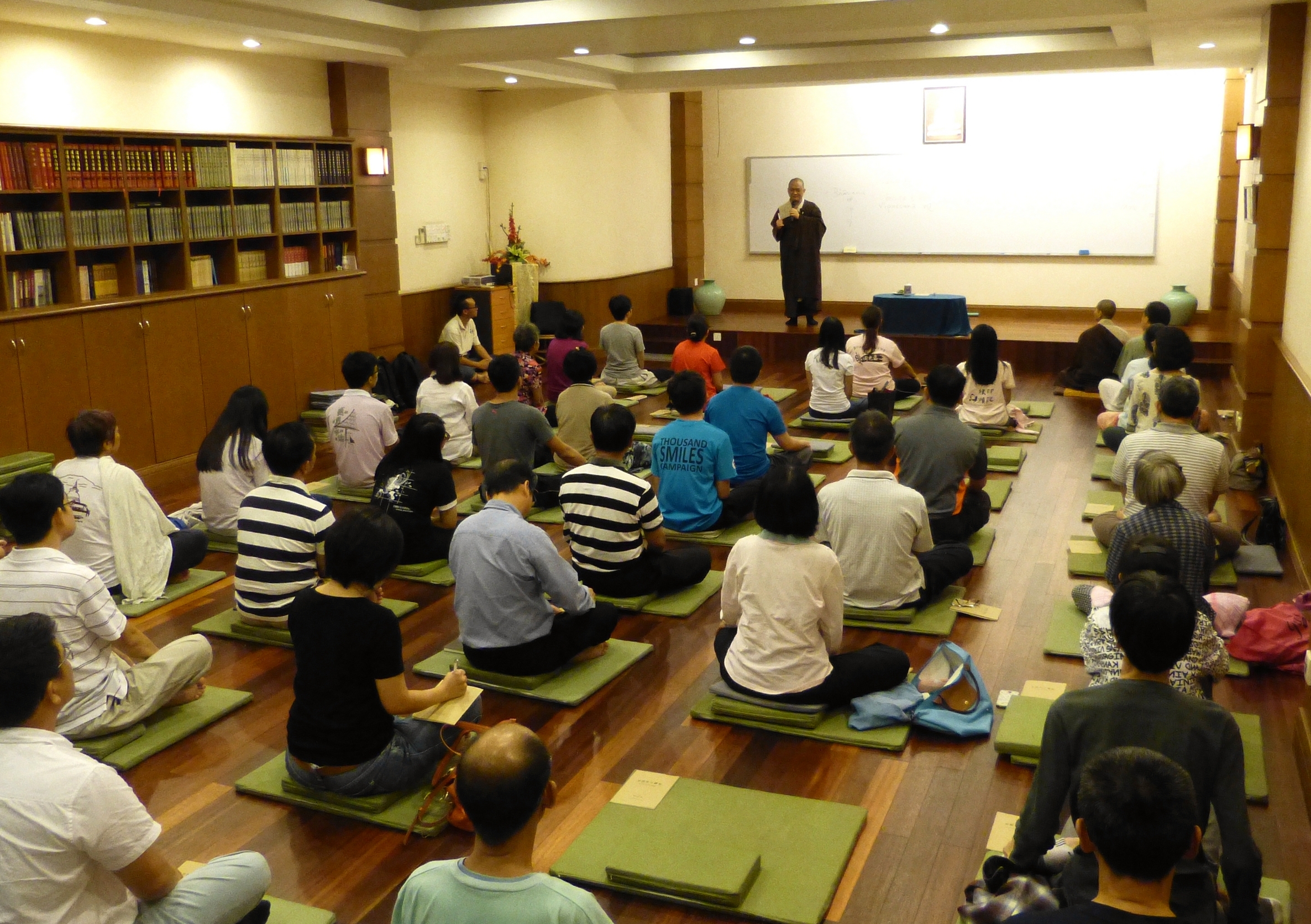 由開印阿闍梨開示的「禪修入門」於3月4日晚上七點半至九點半在寂靜禪林行政中心進行。是晚約52人出席聆聽。阿闍梨簡單扼要的講解Samatha bhavana 止修習和Vipassana bhavana觀修習。也指導七支坐法等調身、調息、把心專注於身的調心方法。學員在老師的善巧引導下實際學習,體驗身心愉悅的利益。善哉!
