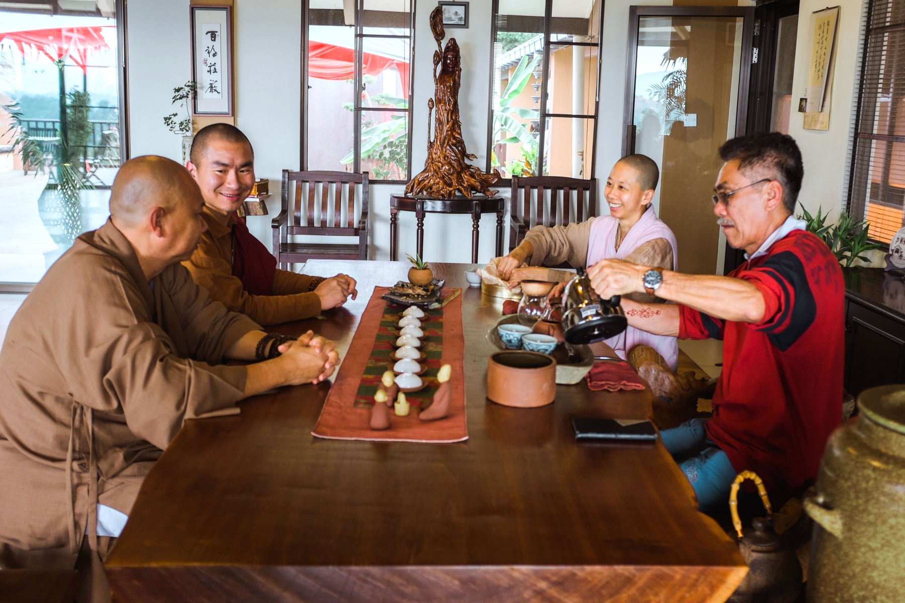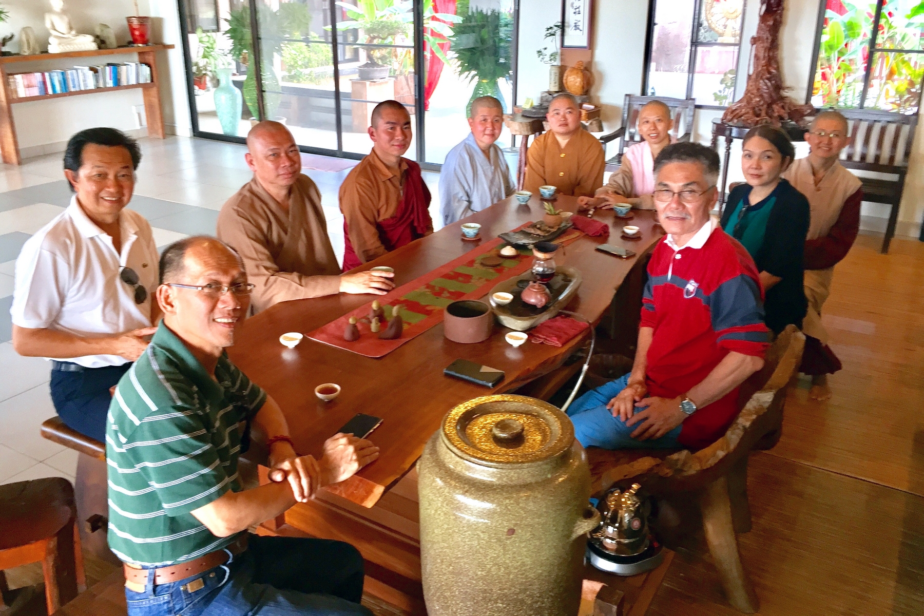 是日下午三時,來自來自不丹藏傳格鲁派(黃教)的Choten Dorji比丘(目前在泰國念博士學位),馬來西亞的章元比丘,覺意比丘尼,覺照比丘尼到訪寂靜禪林。 隨行的還有Richard居士(Buddhist Missionary Society Malaysia沙巴州主席),Alex居士(慈音寺副主席),阿芳居士,寂忠居士等眾。