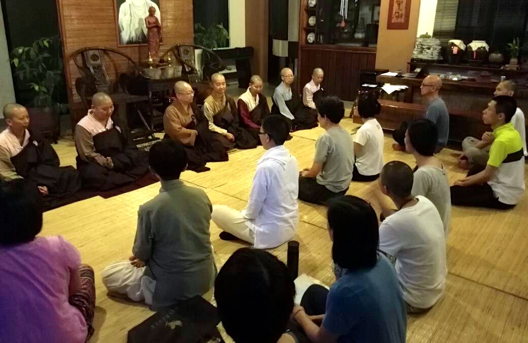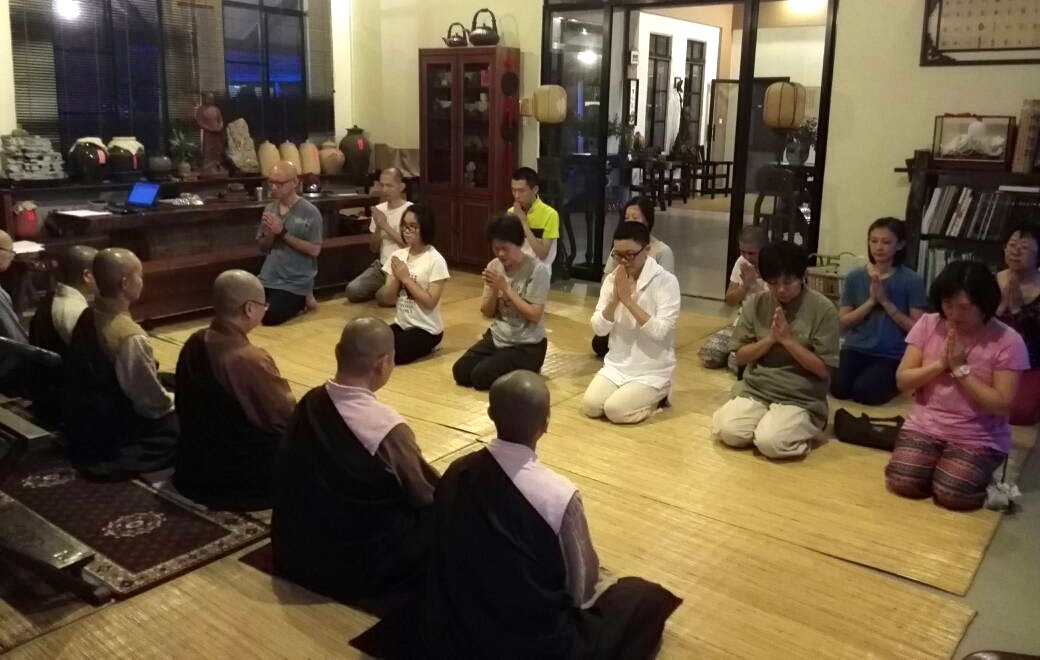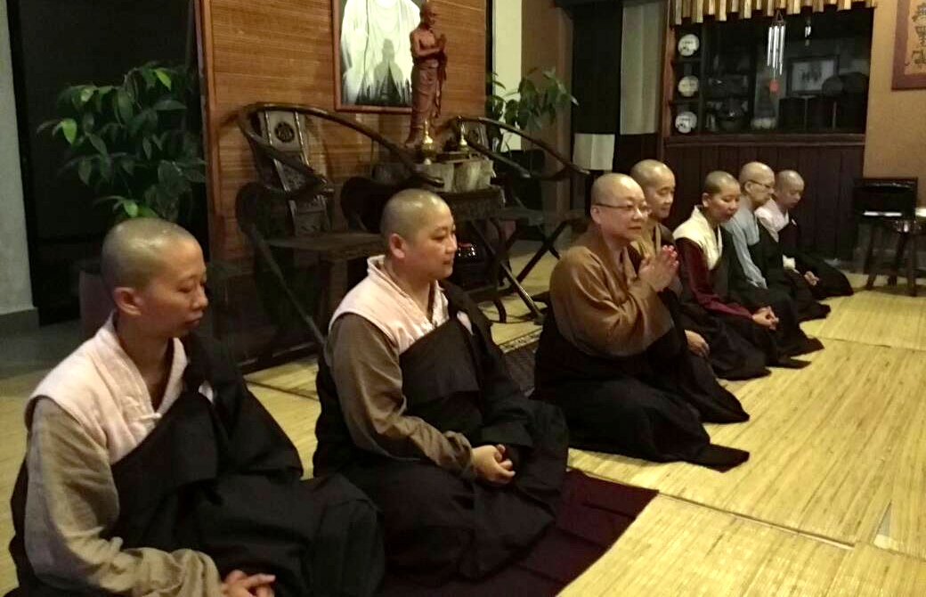 20170525布薩誦戒日,寂靜禪林住眾向比丘尼僧團求懺悔及祈請長老尼給予開示。