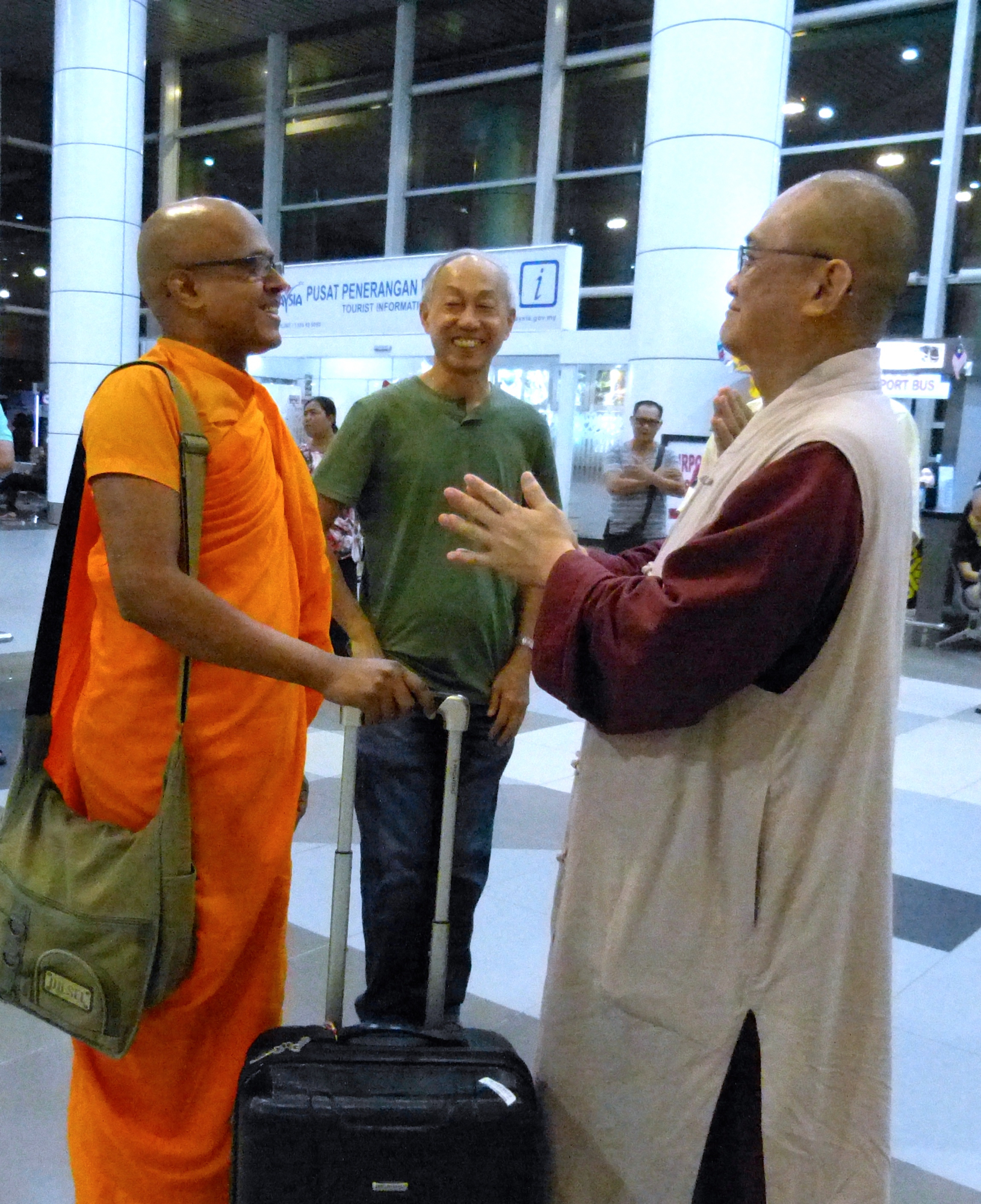 寂靜禪林9月3日的「佛歡喜日、孝親報恩」大活動即將來臨,長老們陸續抵達亞庇國際機場。