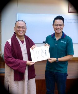 經過這漫長的學習路程,2018年開元第一天就是大家的結業典禮。是日同學們歡喜供僧,並請得開印阿闍梨為大家開示。阿闍梨向同學們點出在深入佛法過程中,攝論這「解經器」除了提供研讀阿含或尼柯耶經典的方便外,也對修道有很大的助益。讀攝論的人也不容易犯上對佛法胡亂臆測的錯誤。阿闍梨更勸勉同學學習了攝論這概綱後,用3-5年的時間來深入其中各個專題,過後再廣學其他經論。同學們聽後都法喜充滿,希望可以把學習到的知識應用在日常生活中,並勤習戒定慧,長養菩提道。