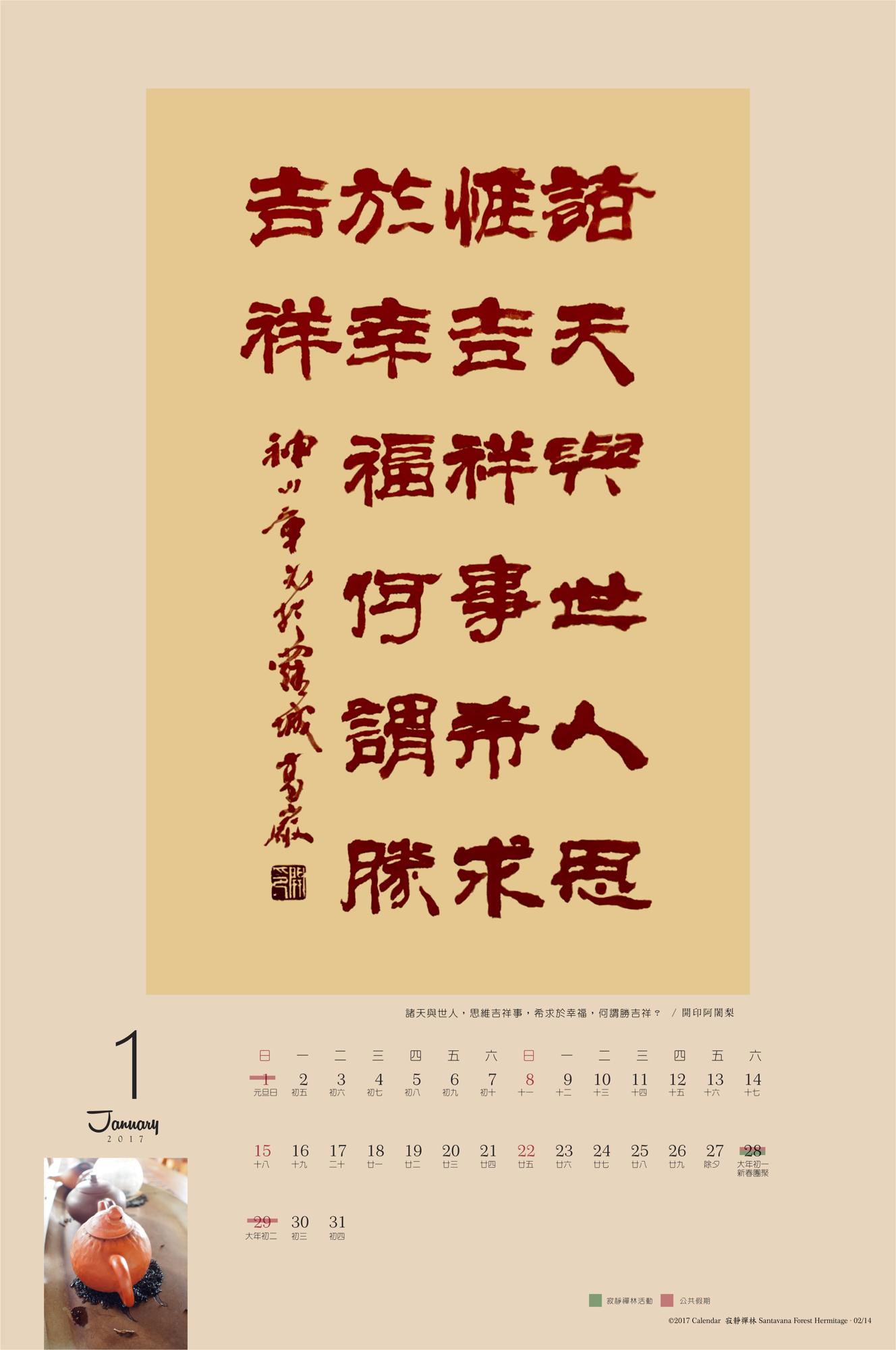 2017年月曆的特色: