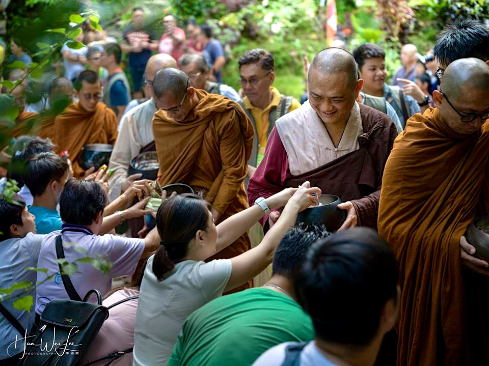 共有卅名分別來自鍚里蘭卡、泰國、西藏、台灣、西馬、及砂拉越等地的出家眾,在托缽時時接受信眾的四資具供養。