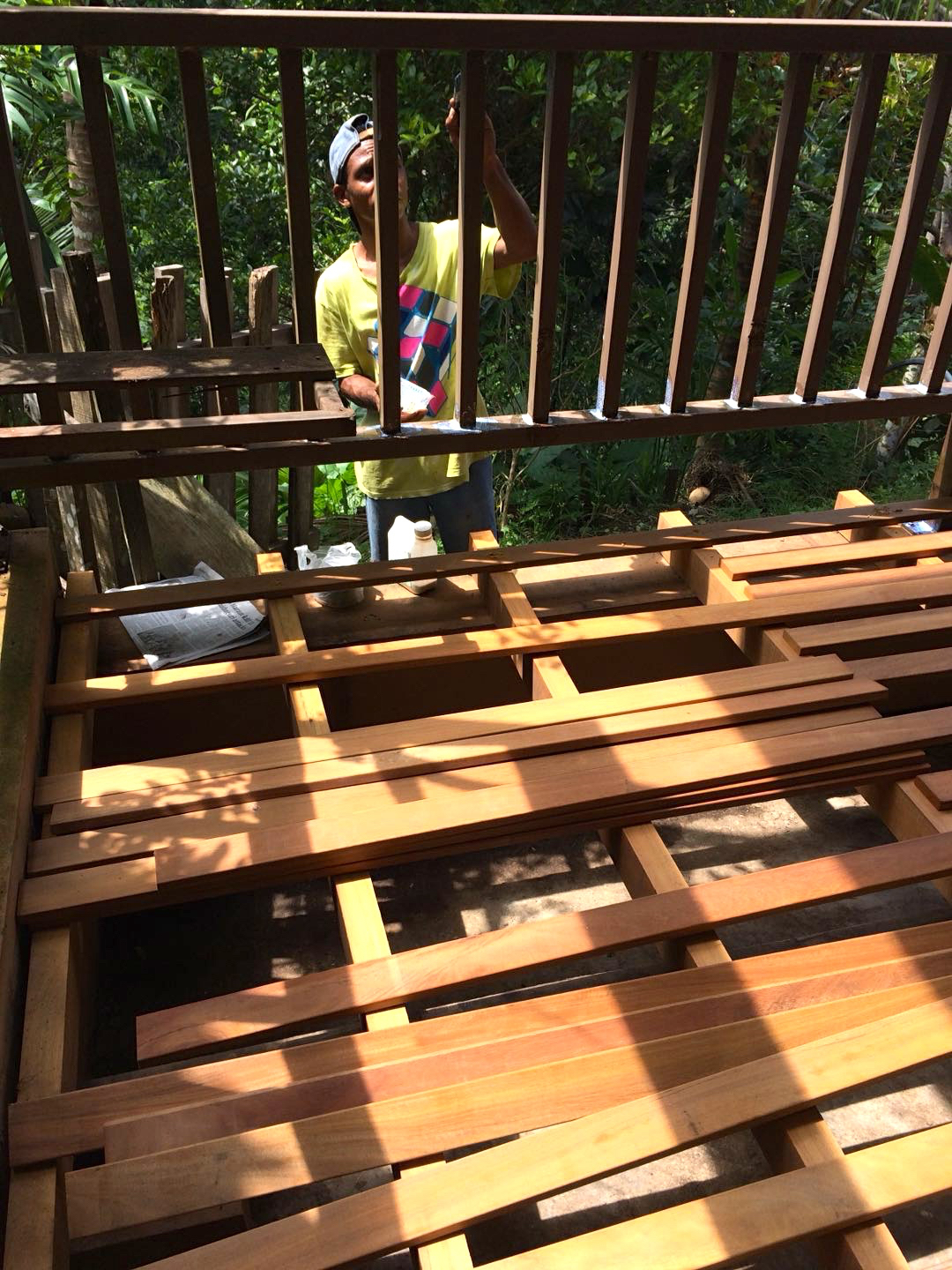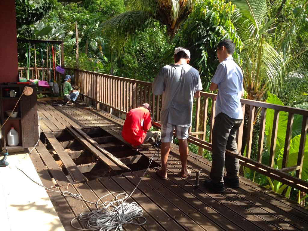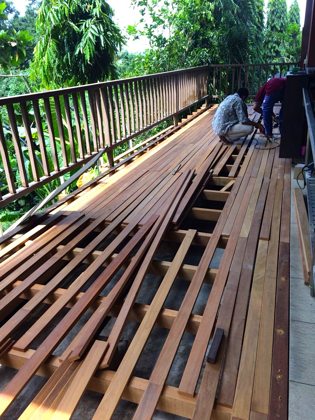 於2017年11月3日(五)經營木商的顏志權居士發心提供持久耐用的婆羅洲特有的鐵木—坤甸鐵木(Belian Batu)替換。在其兒子嘉敏居士監工及數名員工用心維修之下,三天內就完成維修工作了。