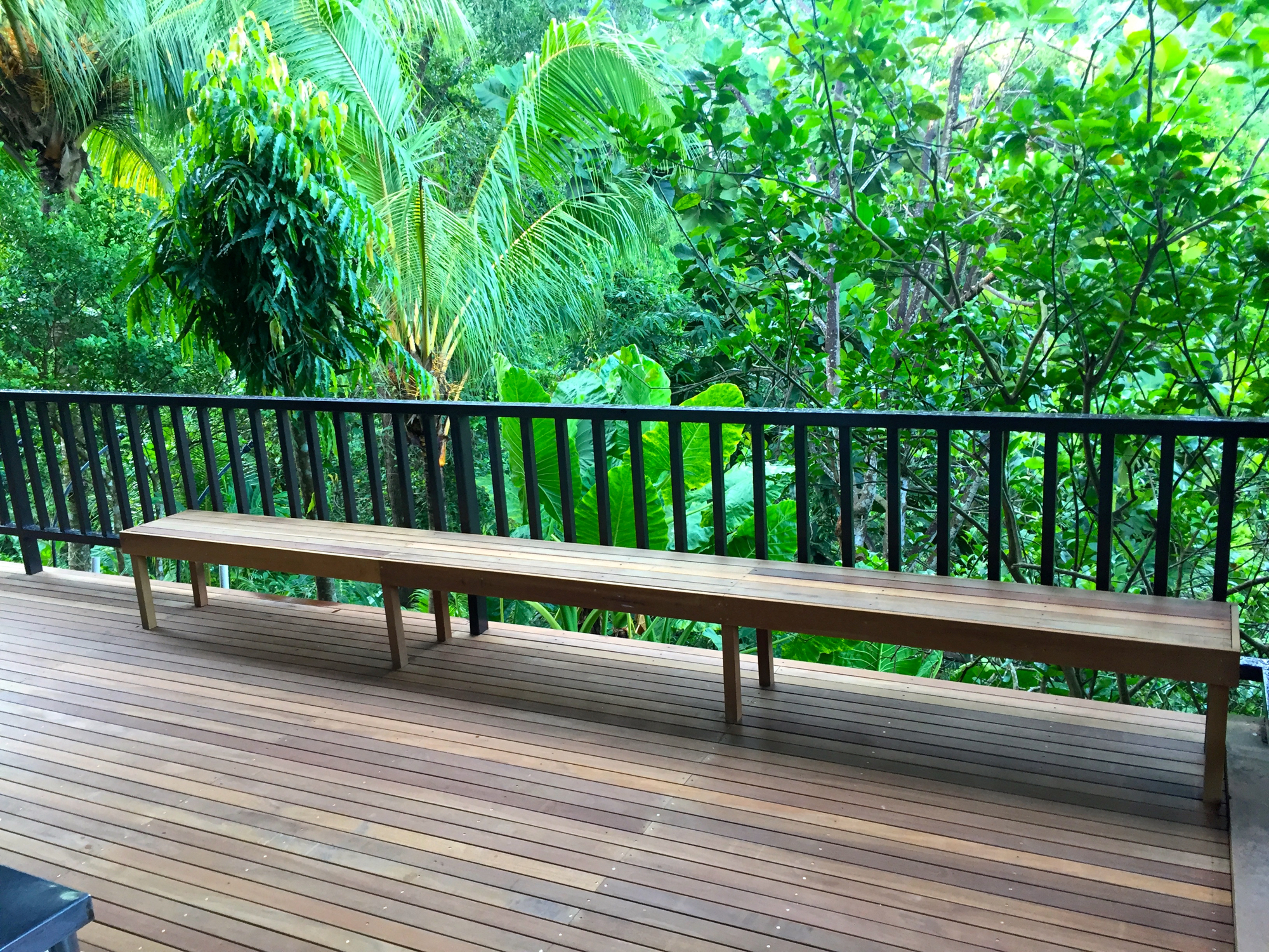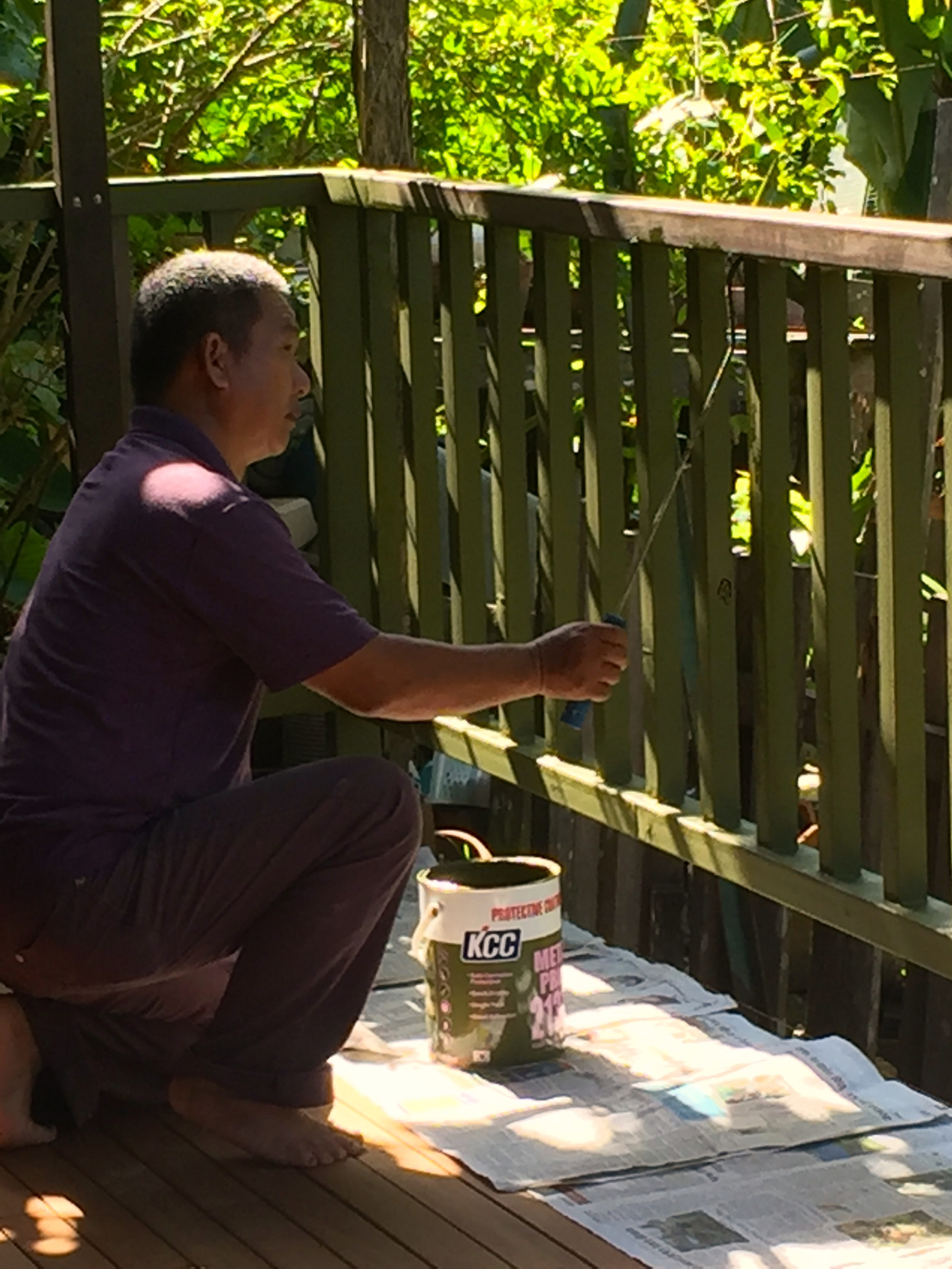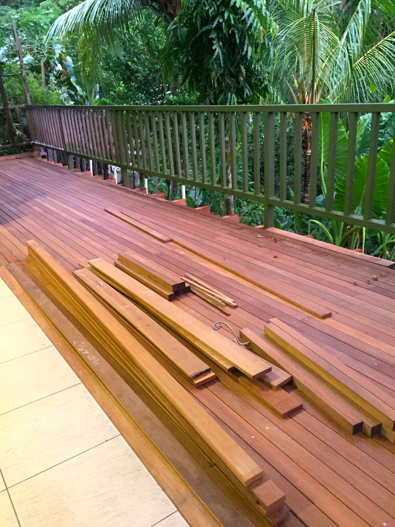 於2017年11月3日(五)經營木商的顏志權居士發心提供持久耐用的婆羅洲特有的鐵木—坤甸鐵木(Belian Batu)替換。在其兒子嘉敏居士監工及數名員工用心維修之下,三天內就完成維修工作了。