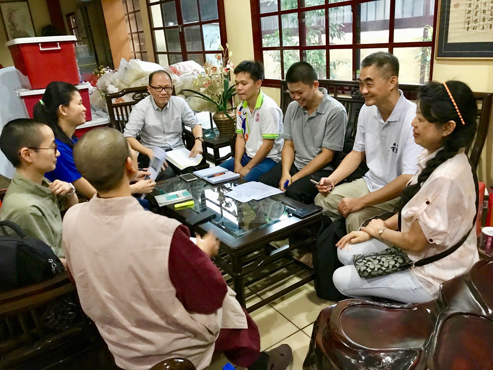 在兩日的研習營中,金山寺當家章桔法師很關心學員們的飲食,馬佛青工作人員的盡然有序地安排活動,事無巨細、令人稱讚。