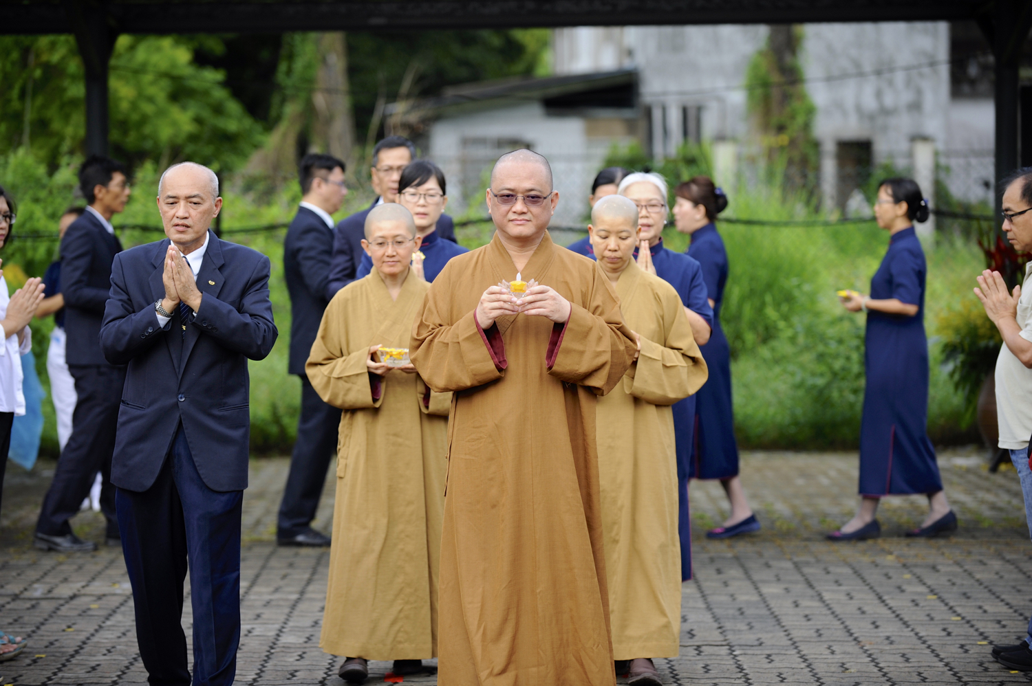 今年,寂靜禪林住持開印阿闍梨率領四位比丘尼及護法會會長等人一同出席這佛誕祈福浴佛典禮。