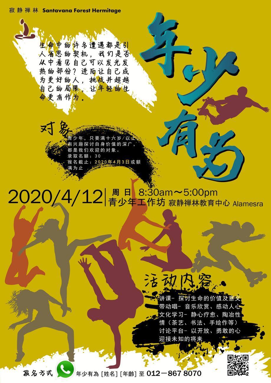 「年少有為」青少年工作坊 4月12日 (最新訊息@3月1日,這課程已延期,敬請留意網站及FB)