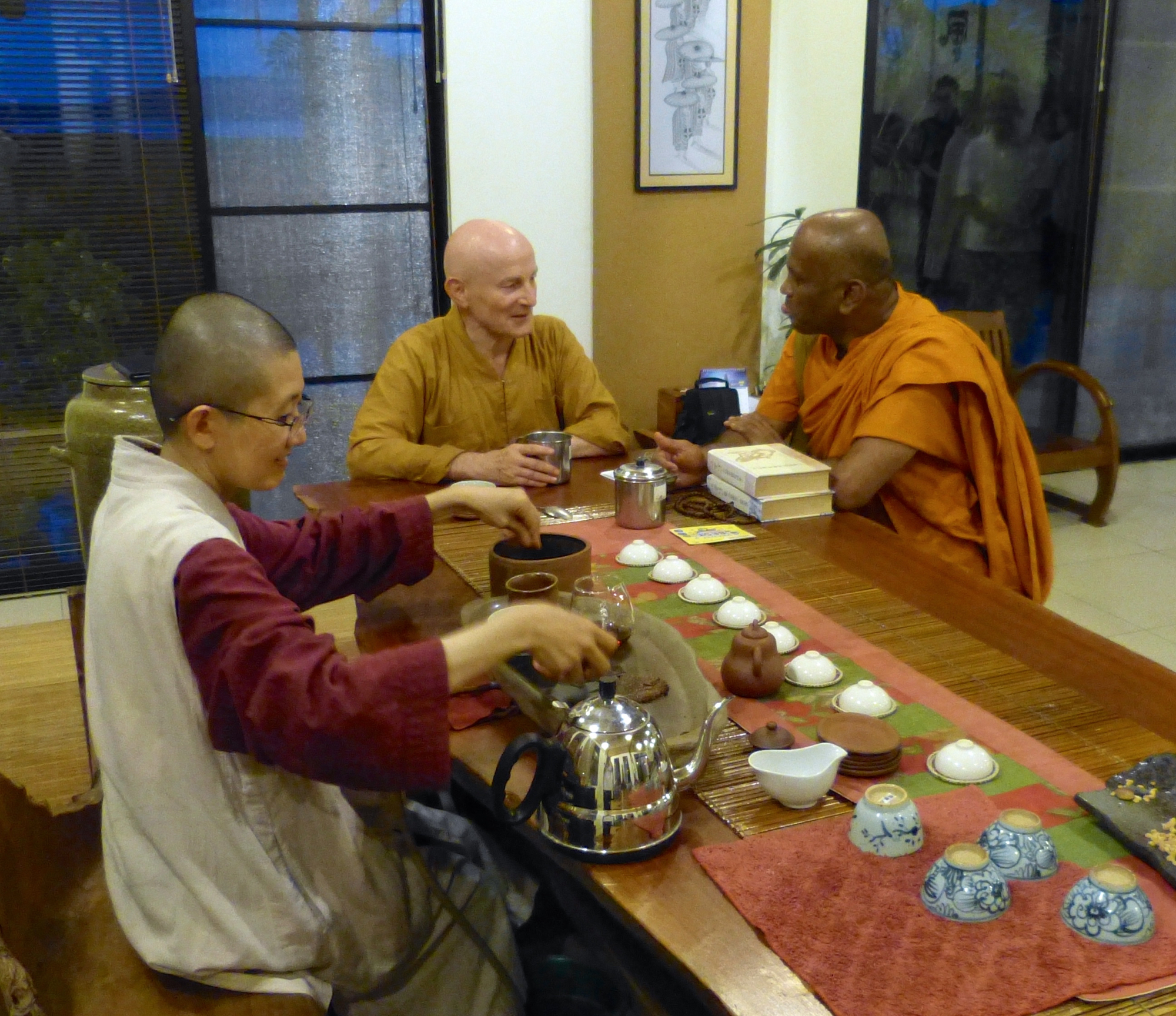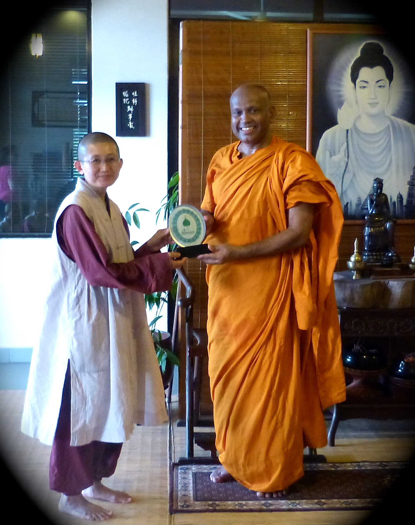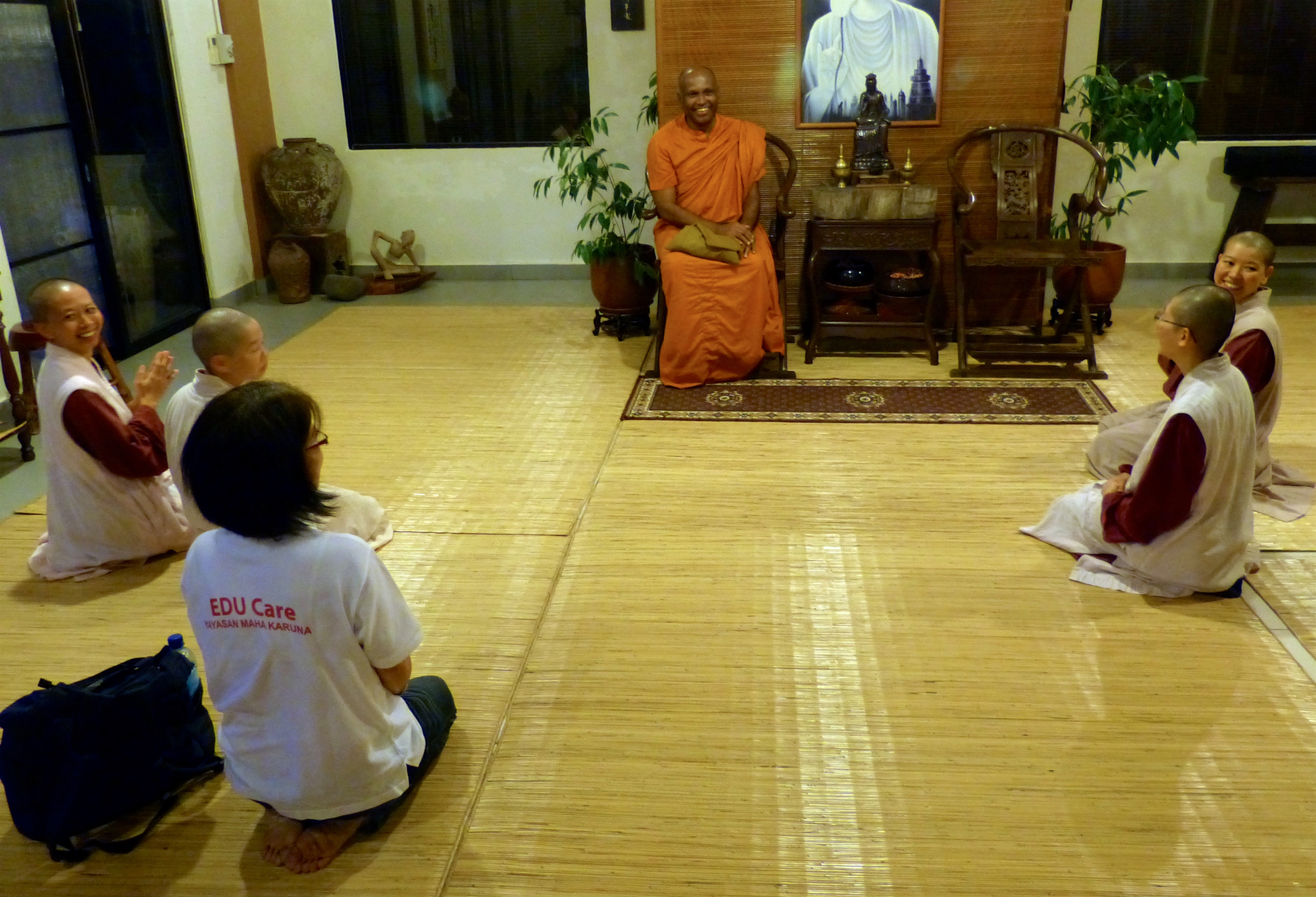 2018年1月19日(五)傍晚,B. Sri Saranankara Nayaka大長老再次蒞臨寂靜禪林及留宿一晚。長老也正好與到來寂靜禪林弘法的捷克籍性空長老使用斯里蘭卡語流談,真棒!