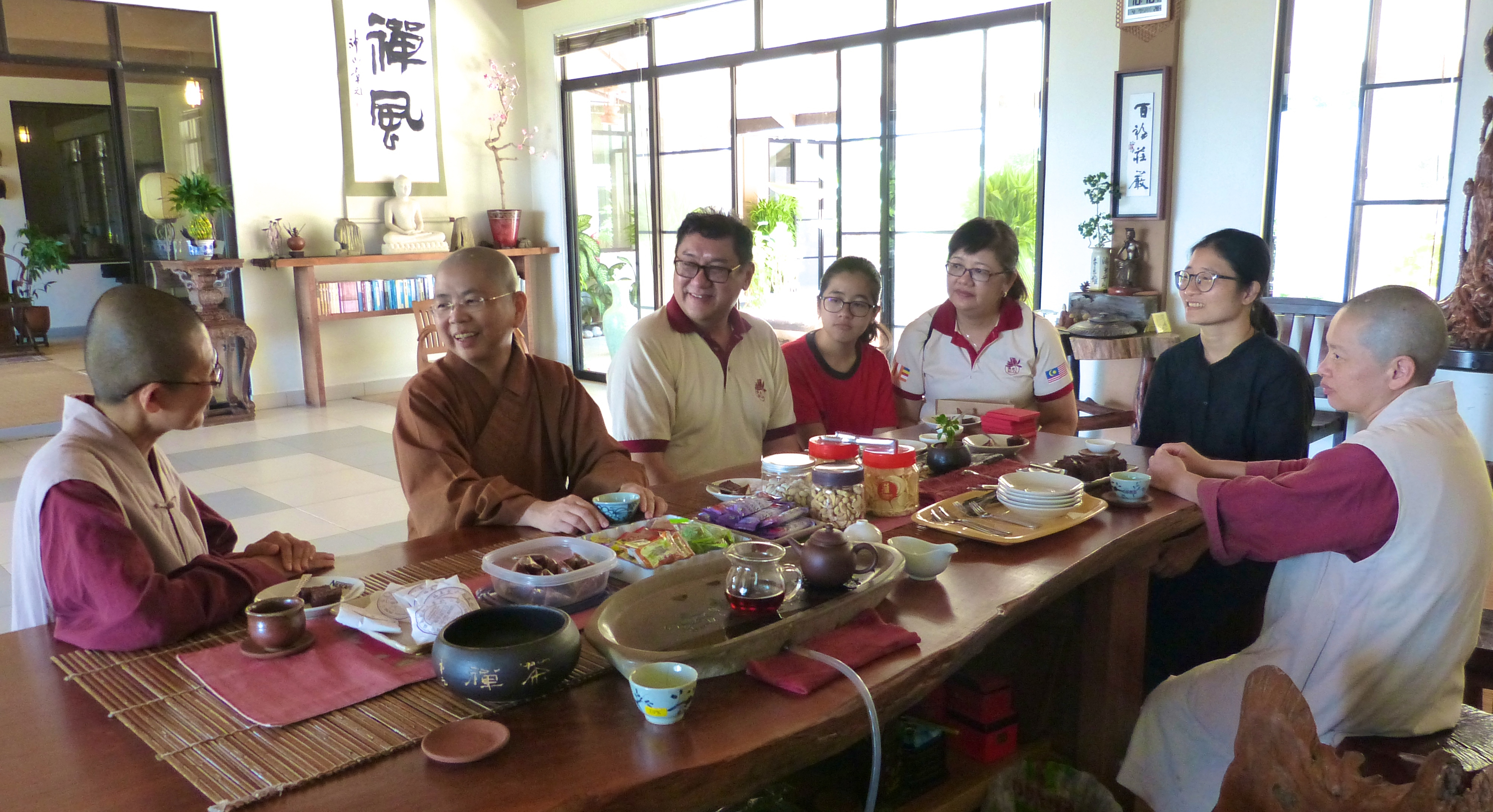 2018年4月7日約10am,滿可長老尼(佛光山澳紐總住持)續多年前到訪後,再次蒞臨寂靜禪林。隨行者有范宜全會長(國際佛光會沙巴協會)伉儷及千金,還有一位佛光山師姑吳美芳居士。