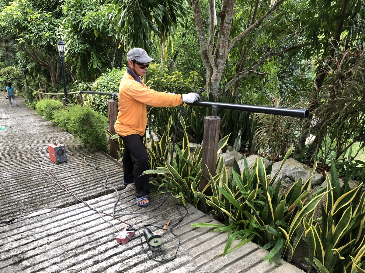 日曬雨淋,前往沙門樂住的尼龍夾麻繩扶梯也已經腐朽多時,11月4日終於開始進行維修工程。