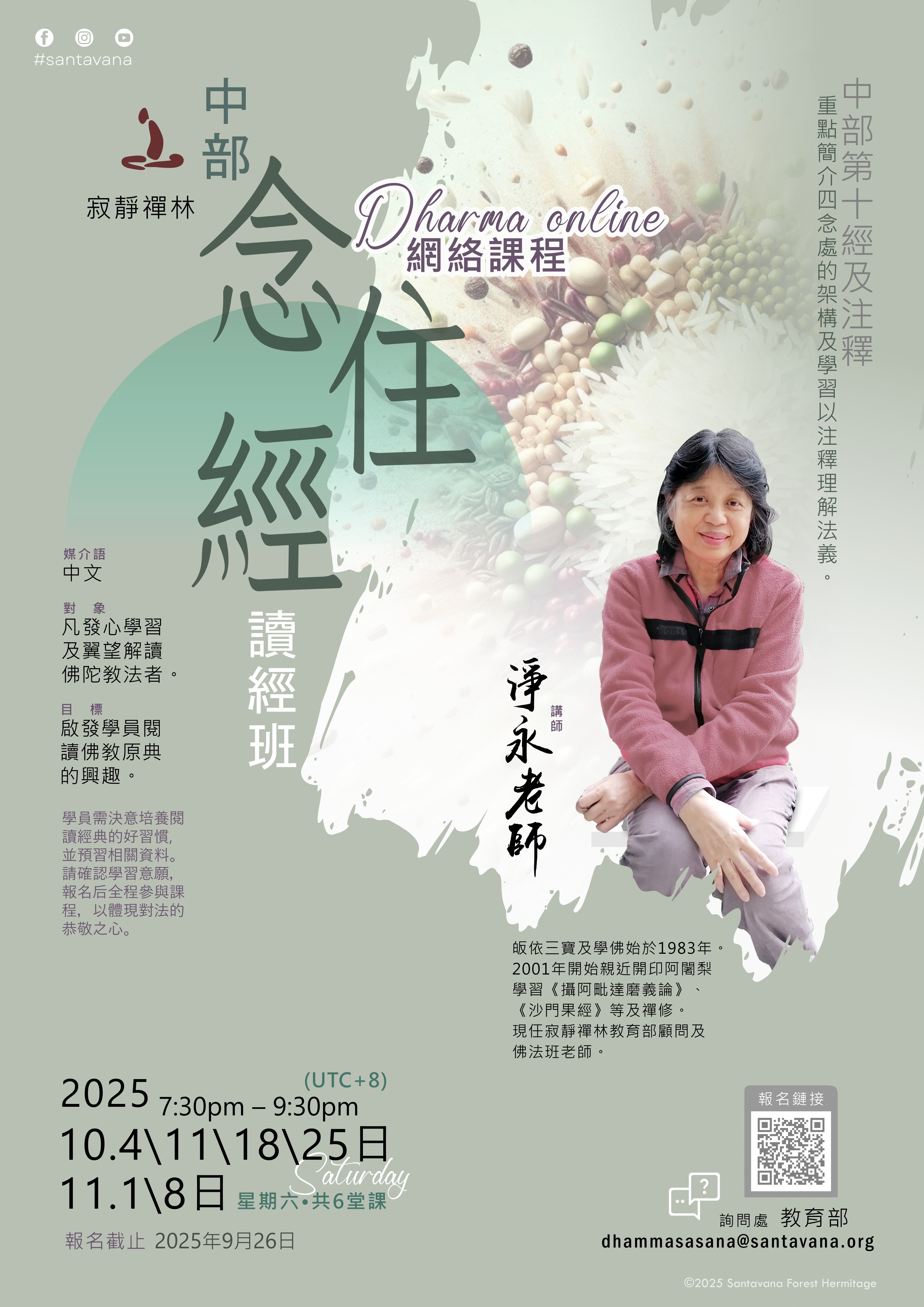 中部《念住經》讀經班 11月8日(星期六,共6堂課) Zoom 網課