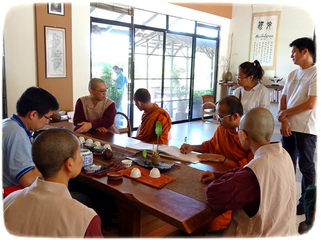 兩位來自泰國的長老-Phramaha Chitsanatewin Biaohatthai(Wat Phra Chaniramit, Buriram Province的住持)及 Phramaha Wichan Phaniwara(Wat Amphawanawam, Pakam Destrict Buriram的組成) 在亞庇數位佛友的隨同下蒞臨寂靜禪林。兩位長老年幼出家,精通數國語言,此行受到寂靜禪林方丈開仁長老親自接待。在約3小時的到訪裡,長老們到訪了沙門樂住及圖書館,午餐後歡喜合影及離開寂靜禪林。