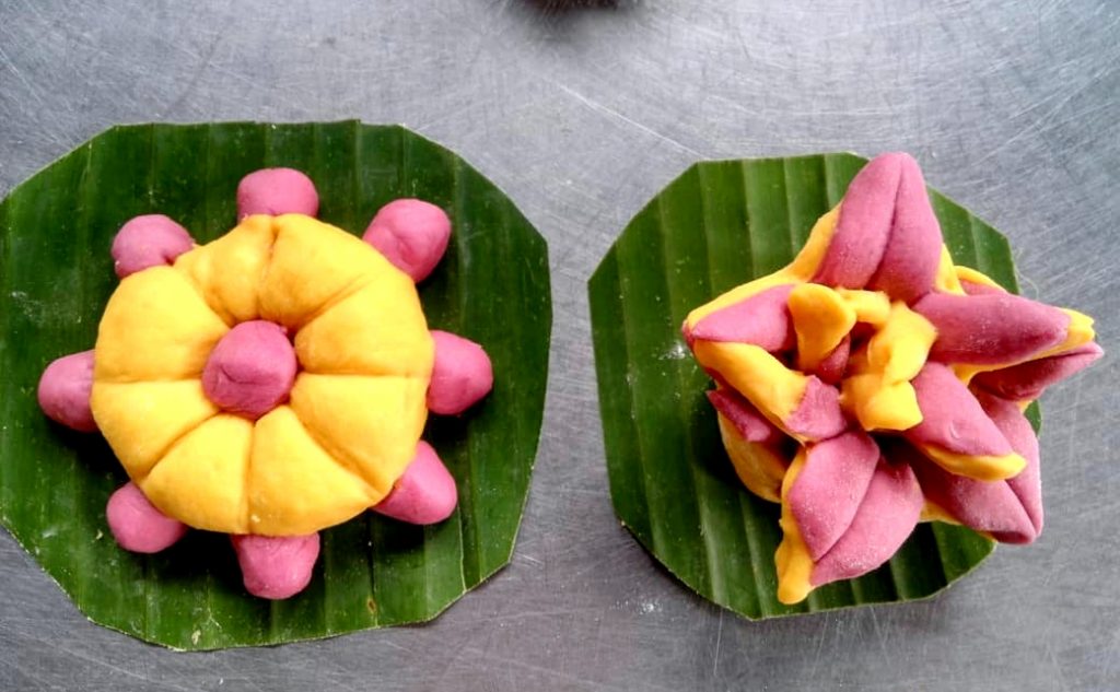 再過2天又是月圓布薩日,今天中午慶鳳居士(圖書館館長慈母)特地買了麵粉自作饅頭壽桃供僧作為明天(6/16)農曆生日紀念,幾位義工們也歡喜的一起學習這饅頭製作,sādhu!