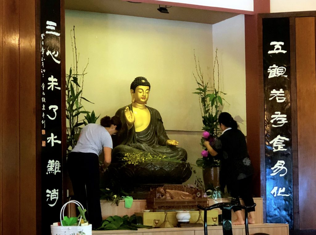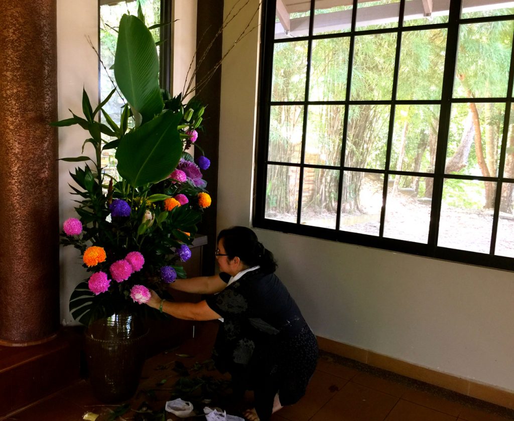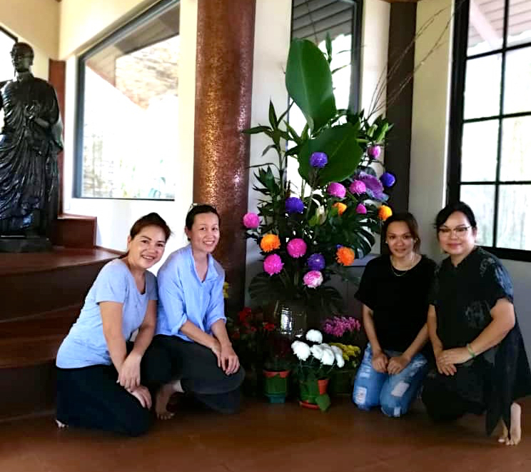 臘月二十九的今天是除夕的前一天,也是「小除夕」的這一個周日,靜慈等佛友特地從亞庇前來寂靜禪林,佈置五觀堂及沙門樂住大禪堂的花。