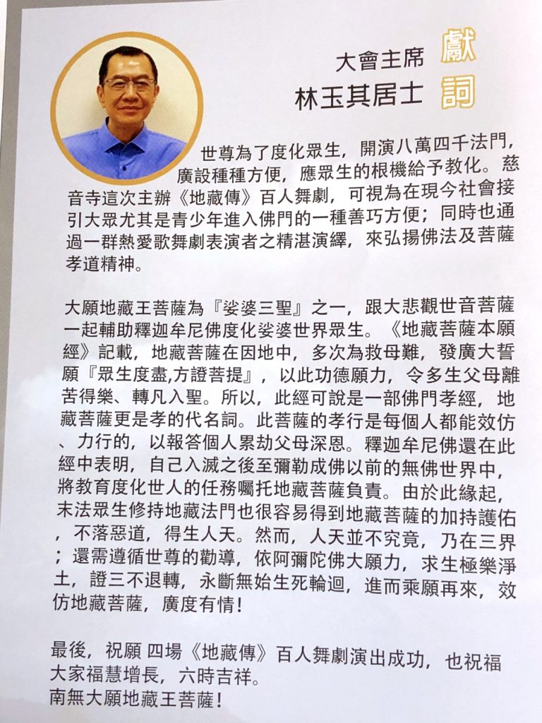 2019年8月9日(五)晚上,寂靜禪林方丈開仁長老受慈音寺邀請出席「地藏傳」舞蹈劇。