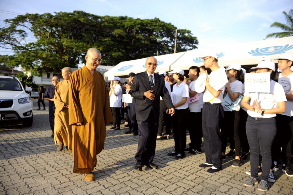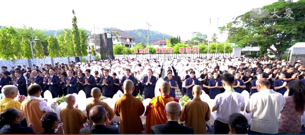 今年的浴佛典禮是特別以576人排出菩提葉圖形象徵佛陀在菩提樹下悟道及慈濟亞庇的縮寫圖騰下圓滿進行。
