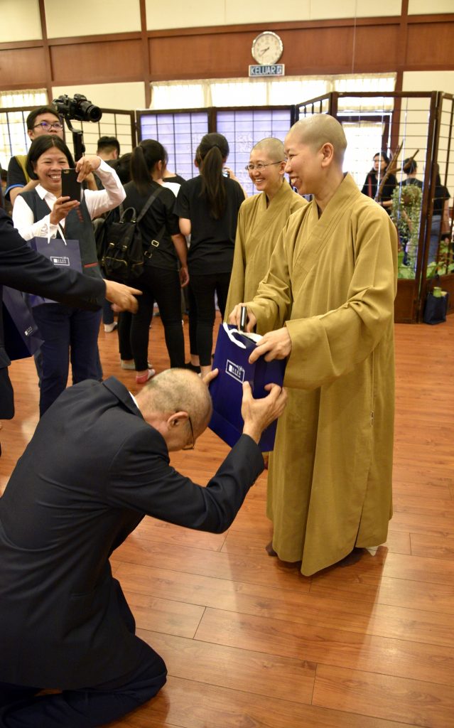 2019年5月12日(日)寂靜禪林僧眾及居士們受邀出席臺灣慈濟功德會亞庇聯絡處舉辦的「佛誕節、母親節、慈濟日」三節合一的浴佛節。 今年,寂靜禪林方丈開仁長老率領三位比丘尼及護法會會長淨宜居士等人一同出席這主題為「感恩尊重生命愛,合敬無諍共福緣」的佛誕祈福浴佛典禮。