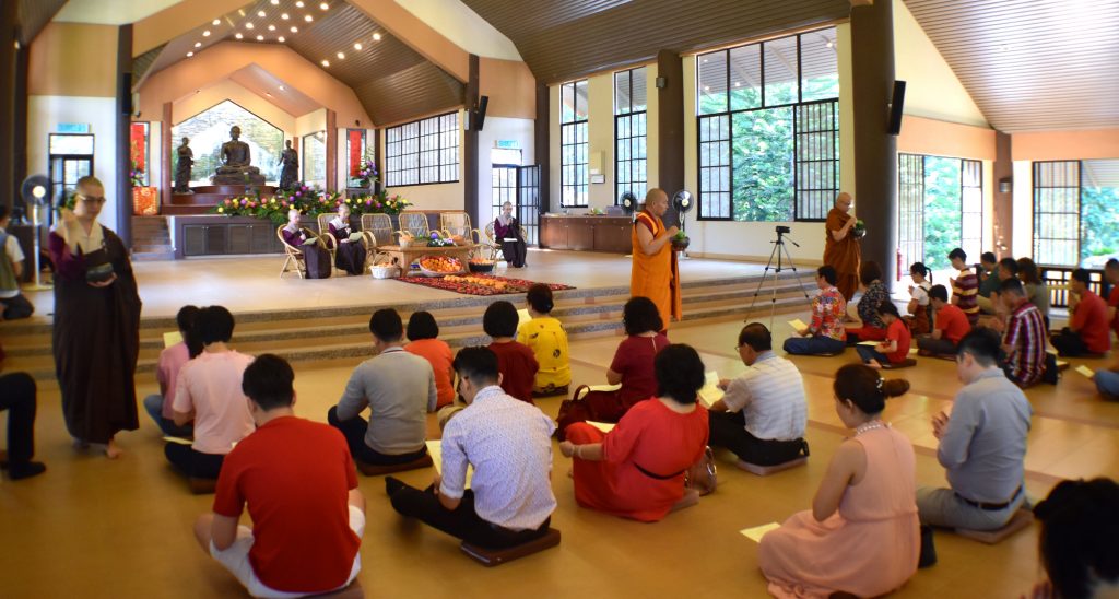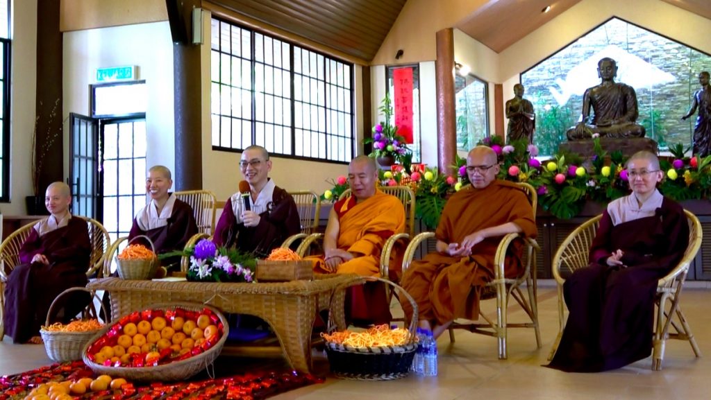 聆聽兩位長老的開示後,僧團諷誦《吉祥經》並灑淨,給予大眾新年祝福。今年寂靜禪林同樣準備了平安茶及平安線與大眾結緣。之後,僧團與大眾移步到五觀堂享用午餐。大眾歡喜參與禪林安排的活動,並帶著正法的贈禮與僧團的祝福回家,迎接新一年的到來。