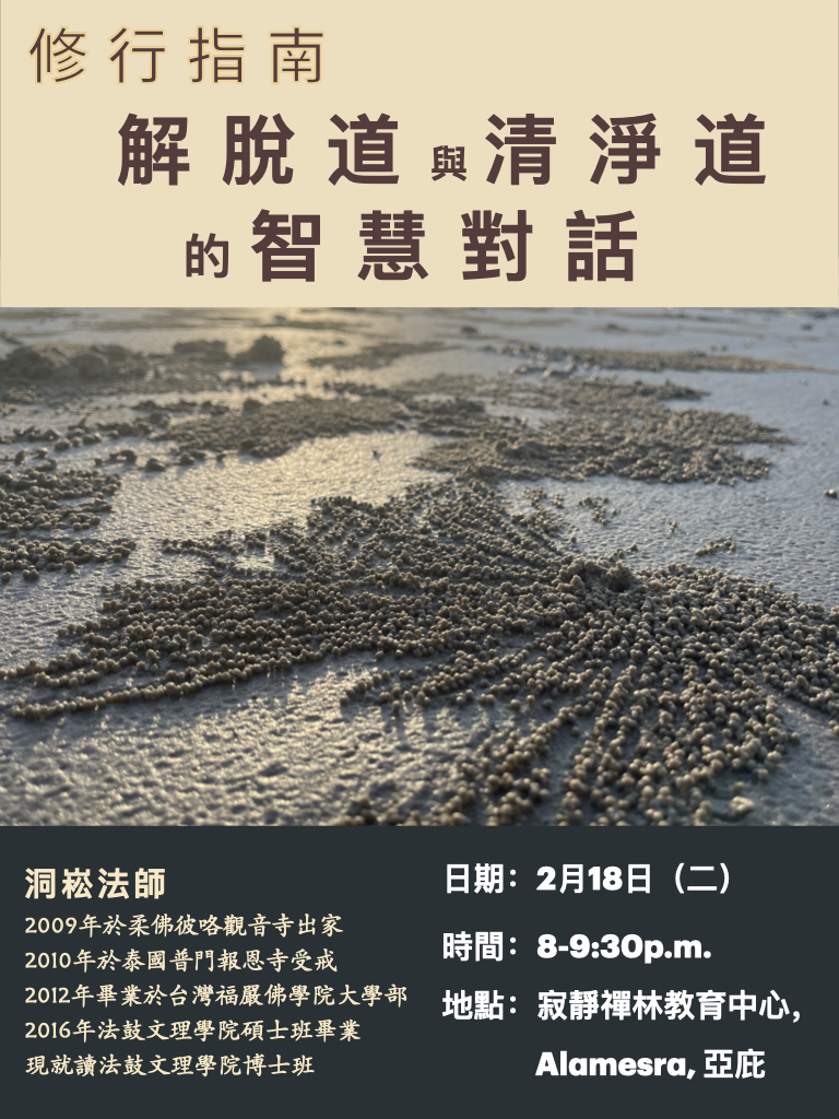 修行指南「解脫道與清淨道」的智慧對話 2月18日(二)8p.m. 於教育中心 歡迎出席聆聽