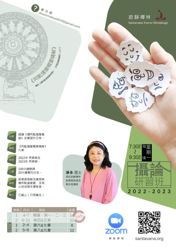 資格:欲學習理解及應用南傳阿毗達磨義,及有心完成兩年課程者。