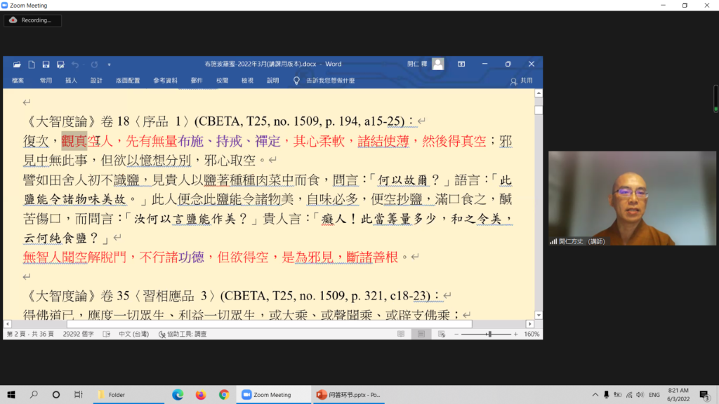 第一次聽開仁方丈的課,而也是在這一次就感受到了方丈授課的「功力」。課文和講義在方丈的講解後,總能讓我們更好地去理解課文精髓。這時就不禁讚歎出家眾深入經藏的精進力和深入淺出的攝受力。