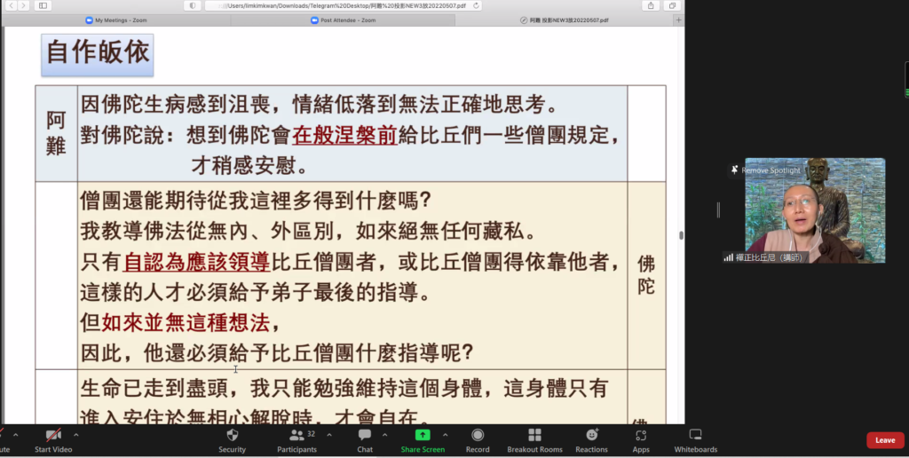 五月不只是感恩的月份,更是在感恩中學習智者的精神和美德,付之于行動的際遇。通過ZOOM平台,「聖弟子傳」聖法談課程在2月19日開始,並于每月一次大馬時間晚上八時正開始綫上進行,共四堂課,已於5月7日圓滿結束。平均上課人數有40多位僧信學員出席聆聽法義。