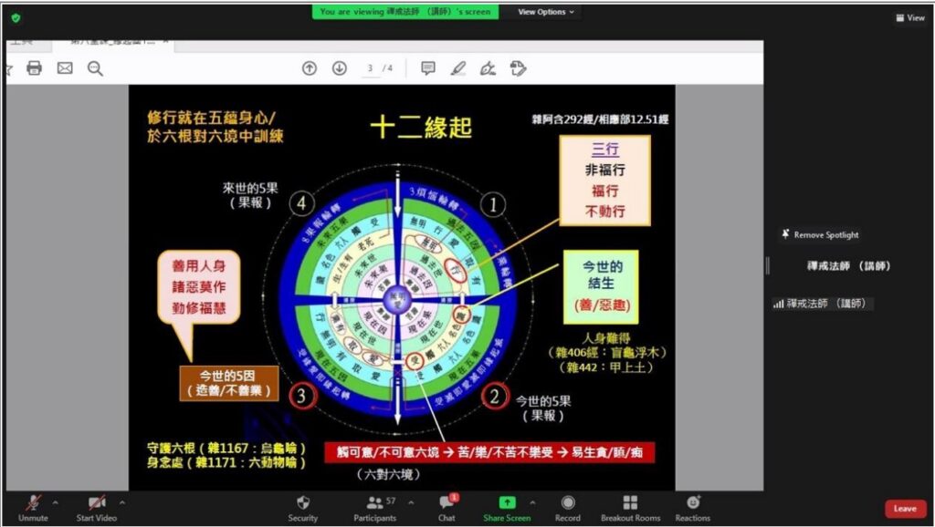 禪戒法師講解十二緣起圖並連貫本學期所學之內容。