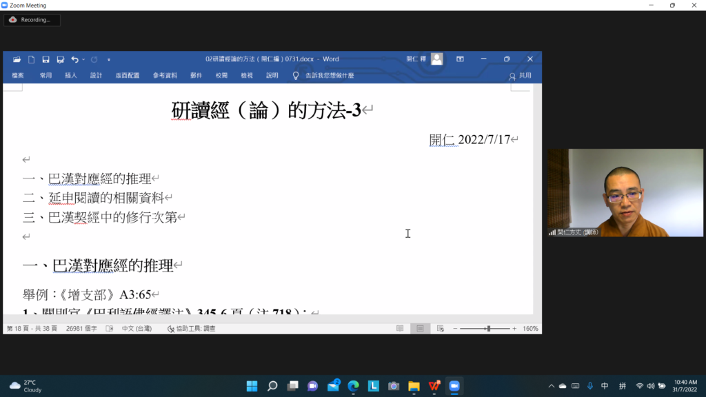 開仁方丈在今天的開示中有提醒學員需要時刻意識到培養善根的重要性,啟動善根讓其成長,並在熏習法義後審查自己的善根有無增長強大。這需要經過內心的反覆思維,慢慢建立信心,積極讓善心生起,進階式地學習戒定慧以讓善根在生命中茁壯成長。