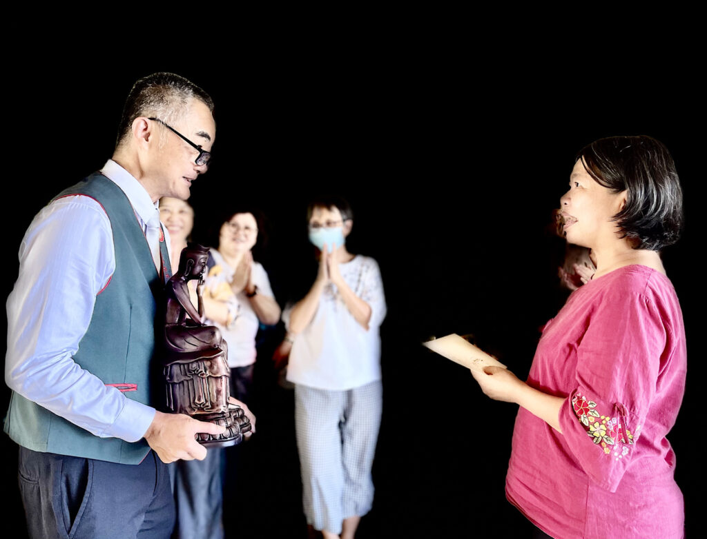 寂因會長也採訪淨宜任職護法會會長心得及退休後的規劃,最後在依依不捨的情懷中,大家也唱生日歌預祝淨宜明天生日快樂吉祥。
