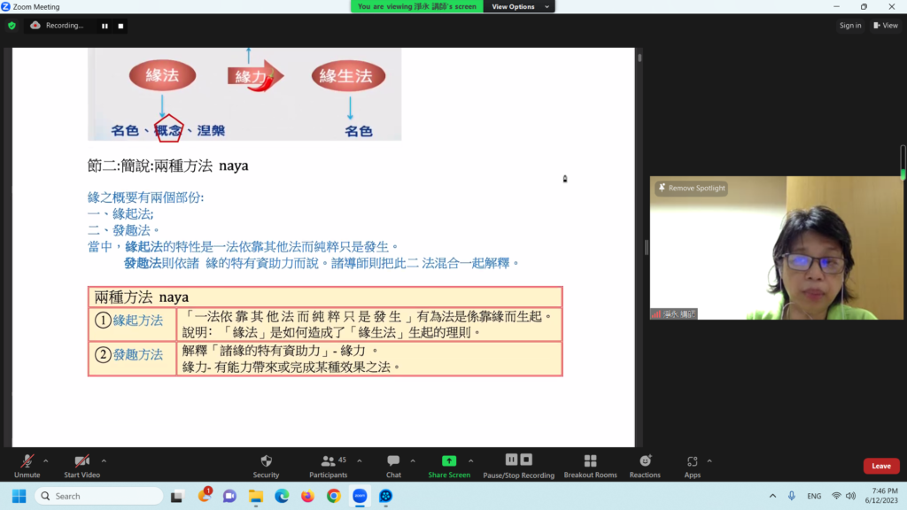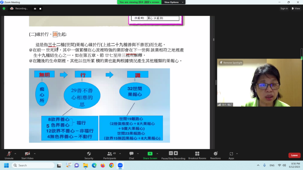 由寂靜禪林主辦,淨永老師帶領的第四學期《攝論研習班》網絡課程已於2023年6月12日,馬來西亞時間晚上7點30分正式開課。此課程的學員有來自世界各地的僧俗二眾報名參加,當晚有40餘名學員藉由此課程在雲端相聚,共同聞法學習。