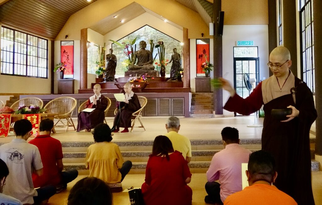 接著,僧團法師們為大眾諷誦《吉祥經》祝福,希望大眾在新年裡一切都吉祥。之後,大眾移步至五觀堂,享用禪林精心準備的午齋。今年寂靜禪林一如既往的為大眾策劃了不同的佛法及禪修課程,希望大眾能夠藉著聽聞正法,如理作意,走向光明和吉祥的未來。
