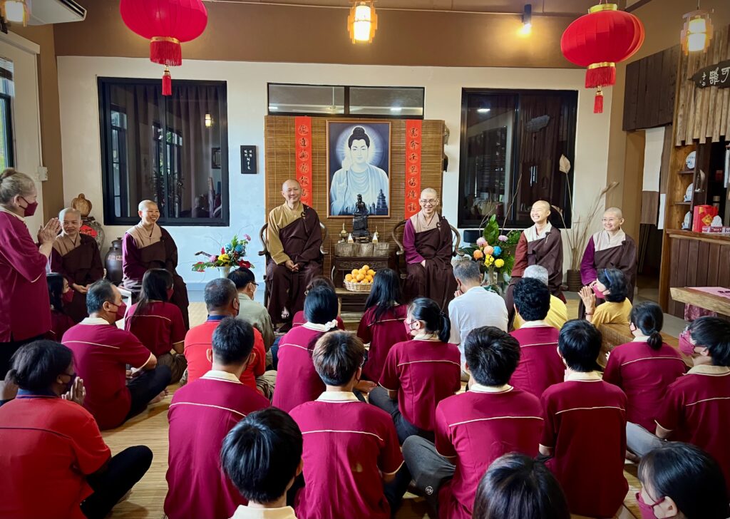 2023年1月22日,大年初一,寂靜禪林舉辦了癸卯新春團活動。今年大約有三百多位會眾及六位僧眾參與今年的盛會。清晨時分,居士們向僧團拜年,祝願法師們安穩快樂。方丈開仁長老及開律長老亦以蘆柑分發給居士們,寓意「苦盡甘來」。