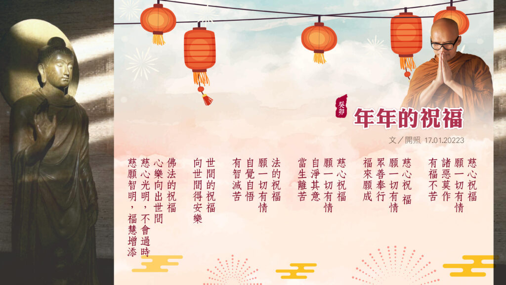 明天 1月22日(日)9a.m. – 1p.m.是寂靜禪林癸卯新春團活動,開照長老也寄來新春祝福。今天除夕,特與大家分享!