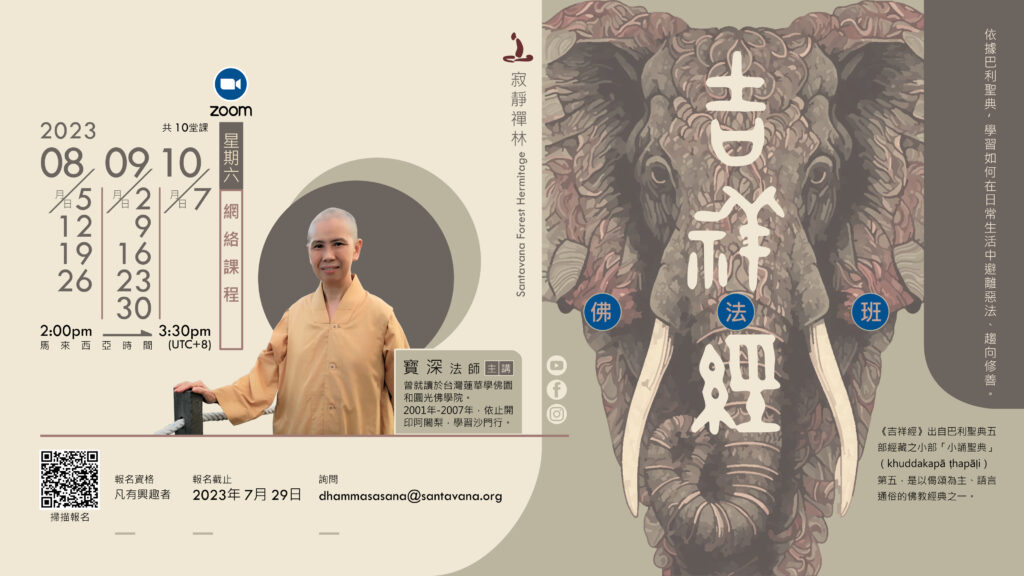 目標:依據巴利聖典,學習如何在日常生活中避離惡法、趨向修善。