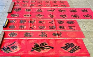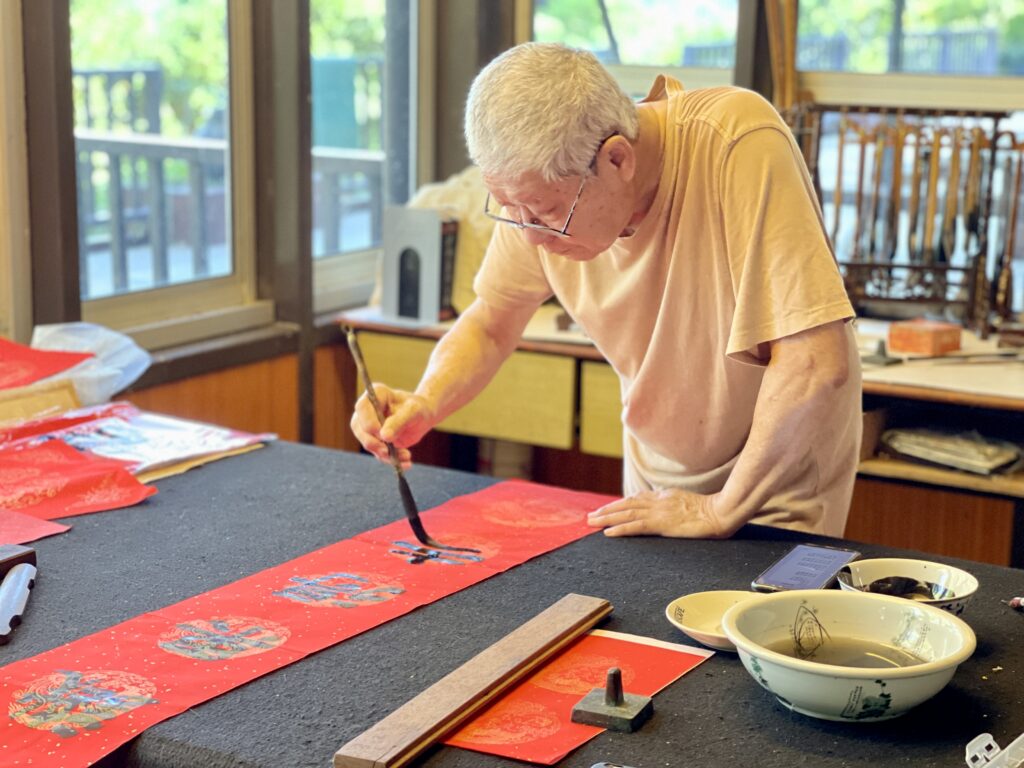 2023年元旦(日)來跨年的淨恆居士來幫忙寫要張貼的春聯。