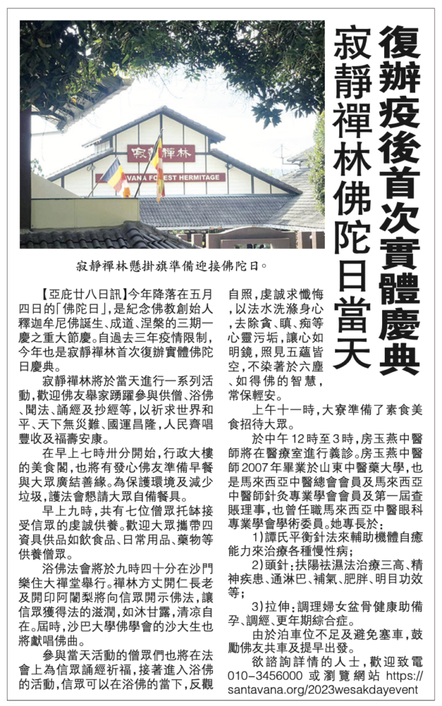寂靜禪林將於當天進行一系列活動,歡迎佛友舉家踴躍參與供僧、