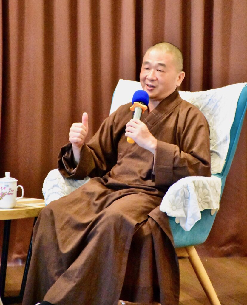 開仁方丈一開始就明言這次主要是輕鬆的交流,所以在分享他出家的因緣時,詼諧提出會出家的人都有一點「怪癖」,與世俗的好樂欲樂格格不入。圓權法師附應這說法,並進一步道明依「此生故彼生,此滅故彼滅」緣起法則,出家是提供斷盡煩惱的絕佳管道,畢竟在家人許多俗務眷屬牽絆,很難清心寡慾。而圓波法師則以帝釋天都會對四方出家眾頂禮的典故,讚嘆出家是遠離一切惡的前提。