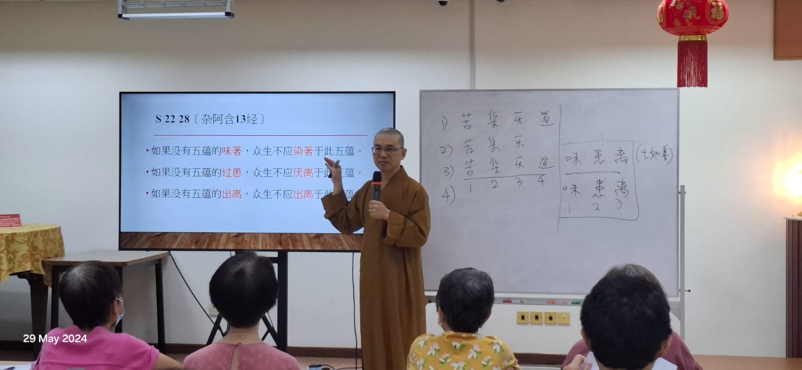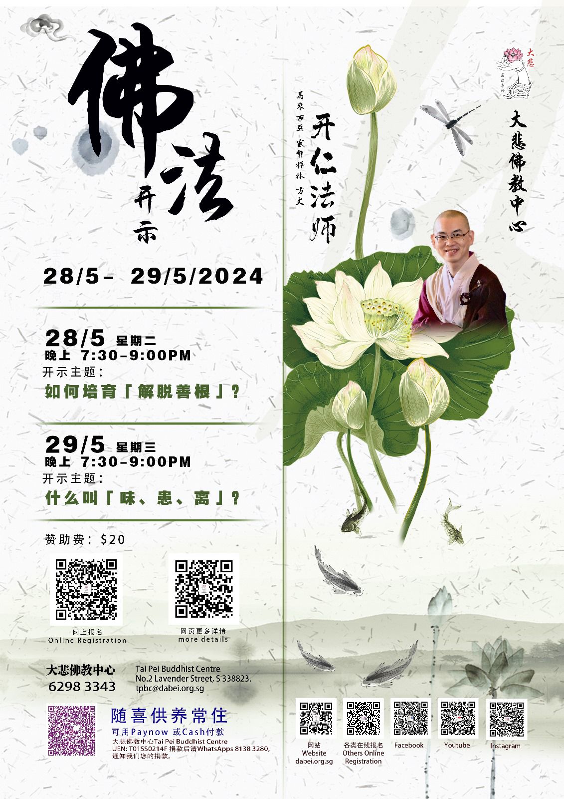 5月29日(三) :開示「什麼叫 味、患、離?」於 新加坡 大悲佛教中心