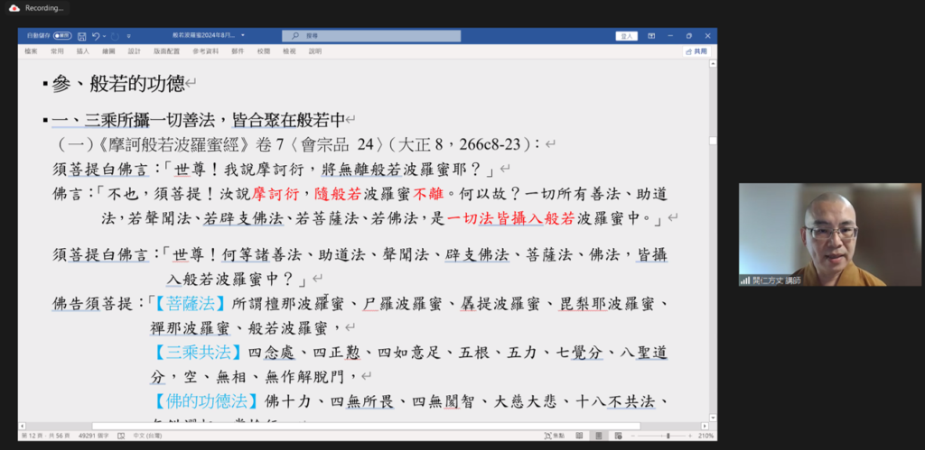 寂靜禪林主辦、開仁方丈主講的《大智度論 – 般若波羅蜜》網絡課程於2024年9月1日(星期日),在馬來西亞時間早晨八時正式授課。自2022年起的三年間,開仁方丈分階段為大眾開示大智度論裡的六度內容,分別為:布施、持戒、忍辱、精進和禪定波羅蜜。是日來到了這個系列裡最後的「 般若波羅蜜」。
