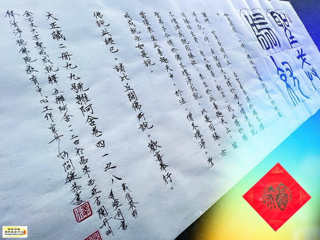 最後,開健法師把他親筆書寫的墨寶,贈送給寂靜禪林-聖戒成就_金石文。