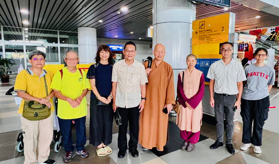 2024年10月28日(一)歡迎繼如長老(美中佛教會主席、芝加哥正覺寺住持)到來亞庇,禪戒法師及護法會會長寂因居前往機場接機。
