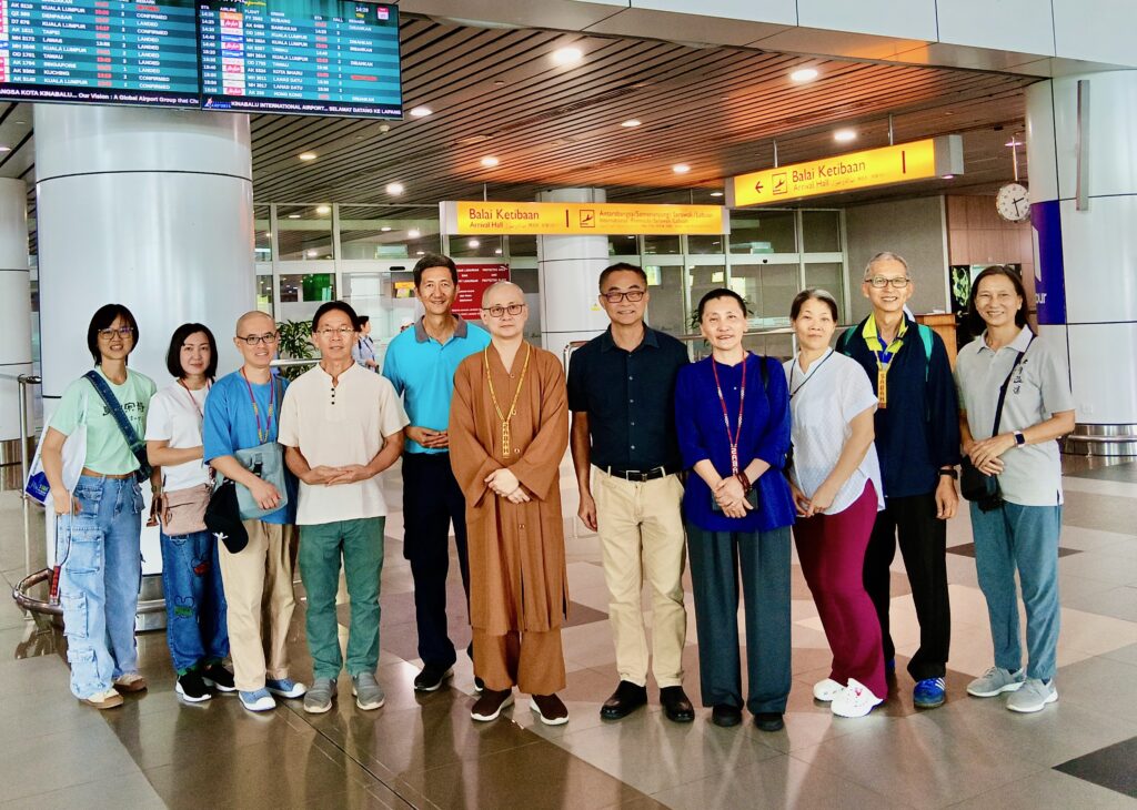 今天下午,定融法師及輔導團團友們抵達亞庇,寂因居士(護法會會長-圖右五)、正忠居士(護法會署理會長-圖左四)、靜雅居士(教育部部長-圖右一)、靜宇居士(文宣組組長-圖左一)及國輝居士(圖左五)前往亞庇機場迎接來自新加坡的法師佛友們。