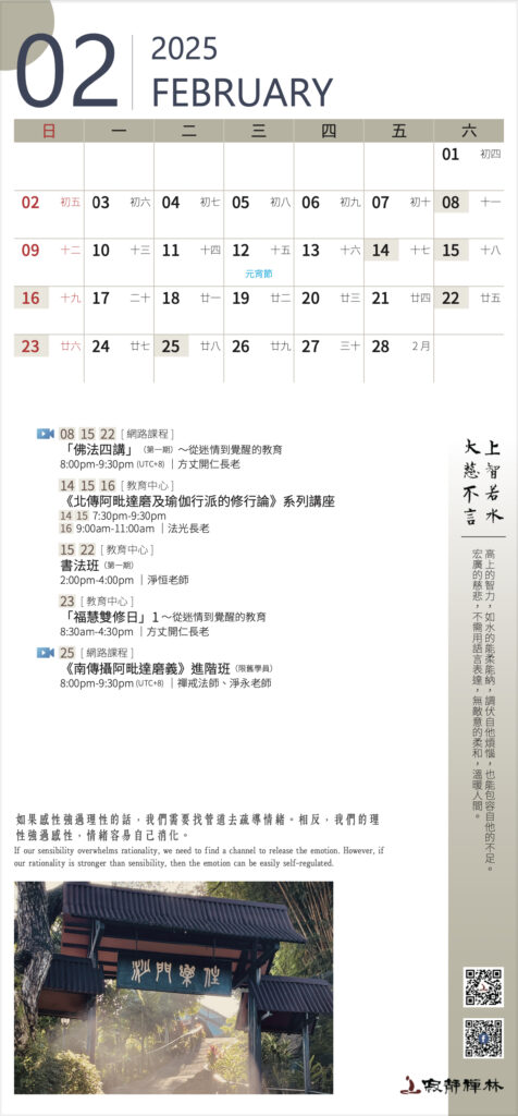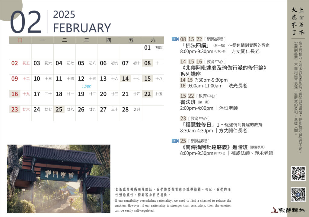 如果感性強過理性的話,我們需要找管道去疏導情緒。相反,我們的理性強過感性,情緒容易自己消化。──寂靜禪林方丈開仁長老開示