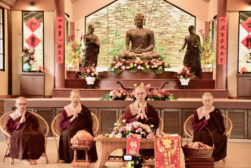 接著法師們為大眾諷誦《吉祥經》,祝福大眾在新年裡一切都吉祥如意。之後,大眾移步至五觀堂,享用禪林精心準備的素食午齋。今年寂靜禪林安排了眾多線上和線下的課程,內容涵蓋佛法、禪修、阿毗達摩、兒童班、輔導等,講師陣容強大,包括海內外眾多名家大德,希望大眾能夠藉著聽聞正法,福慧增上,為自己帶來今生和來世的安樂。課程詳情歡迎瀏覽寂靜禪林官網 santavana.org