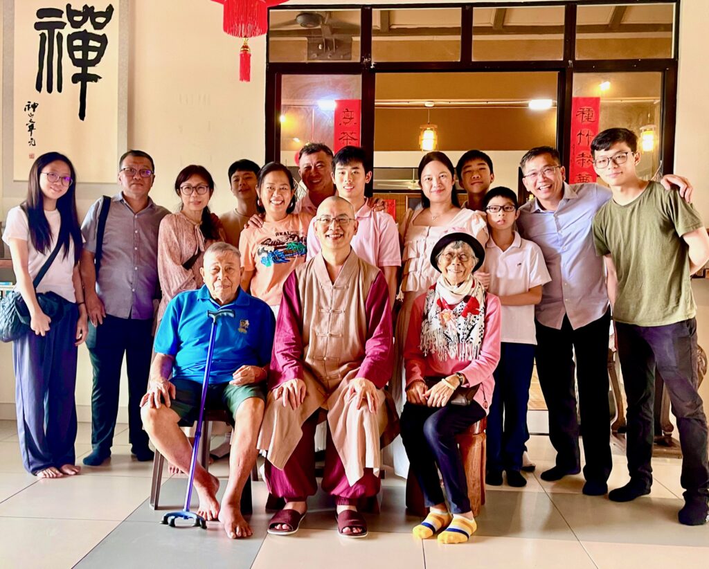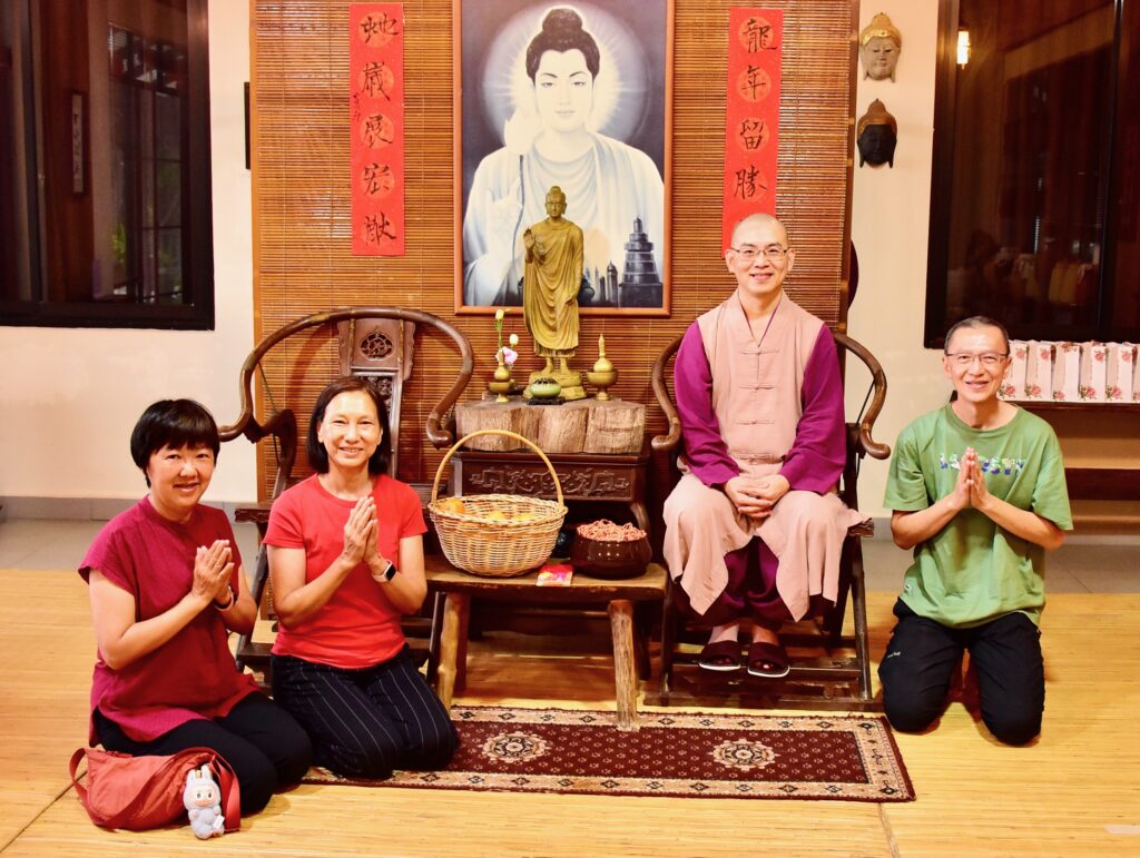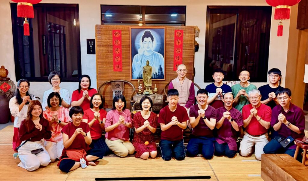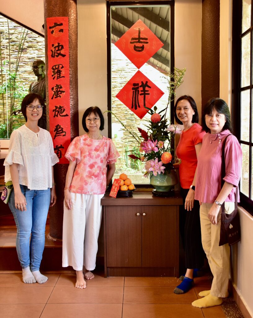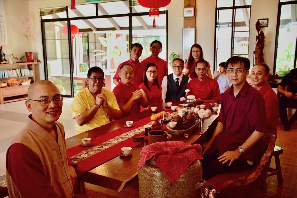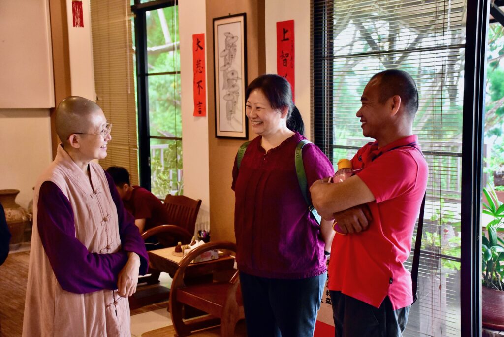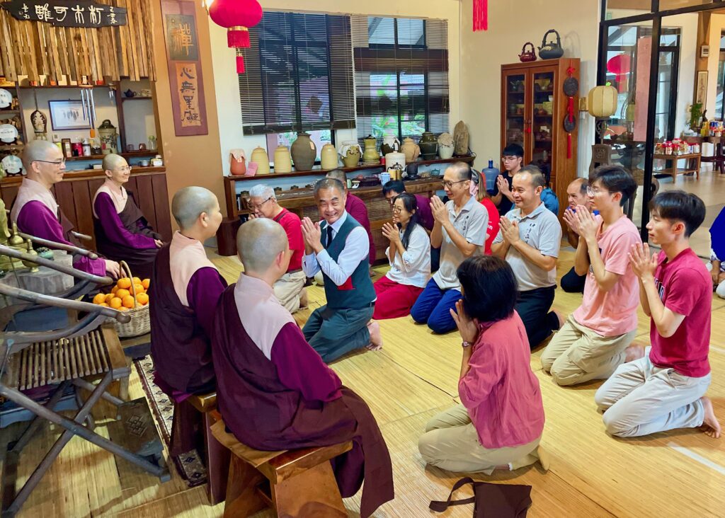 乙巳蛇年大年初一,寂靜禪林舉辦了新春團聚。今年有四位法師及約兩百餘會眾參與今年的團聚活動。一大清早,居士們向僧眾拜年,方丈開仁長老以蘆柑和平安繩分發給居士們,以祝大眾大吉大利、平安吉祥。